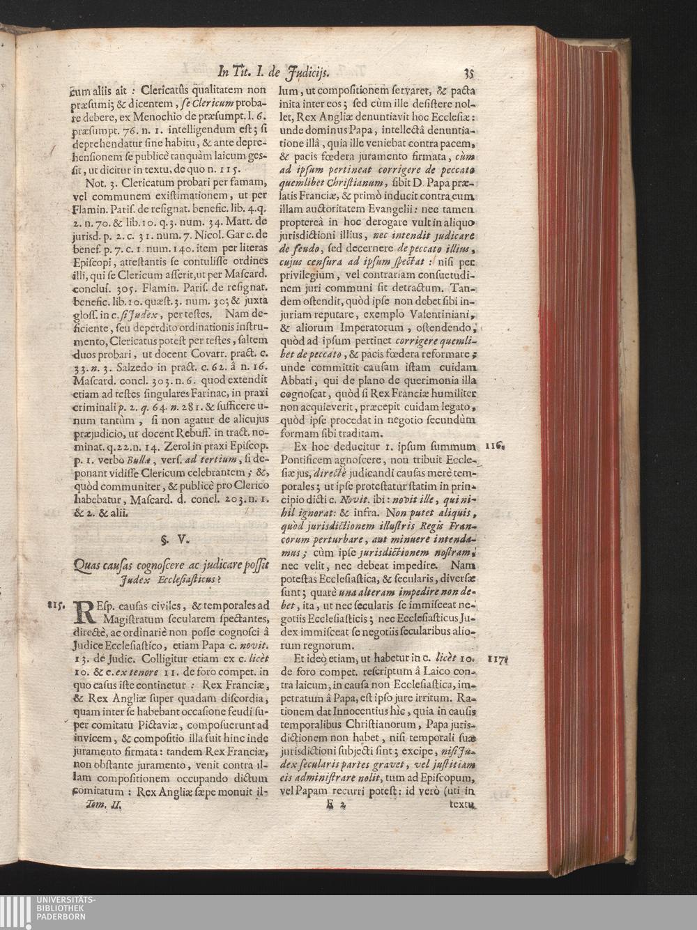 Tomus II (1708) In Librum II. Decretalium, Per Triginta Titulos Distributum, In Quo Agitur De Judiciis, Foro Competenti, Libelli Oblatione, Mutuis petitionibus, ...
