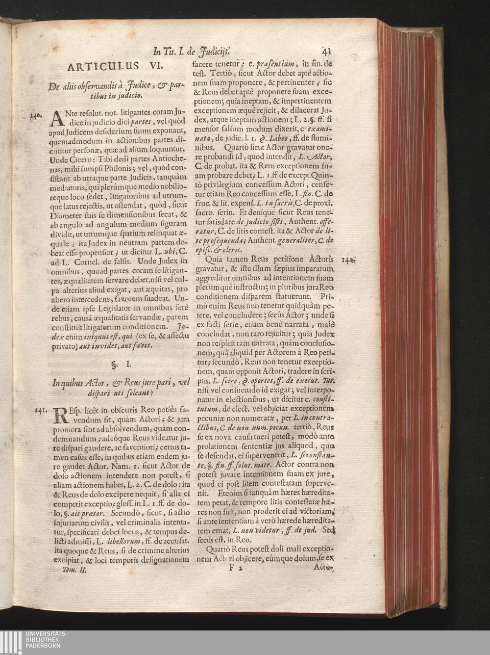 Tomus II (1708) In Librum II. Decretalium, Per Triginta Titulos Distributum, In Quo Agitur De Judiciis, Foro Competenti, Libelli Oblatione, Mutuis petitionibus, ...