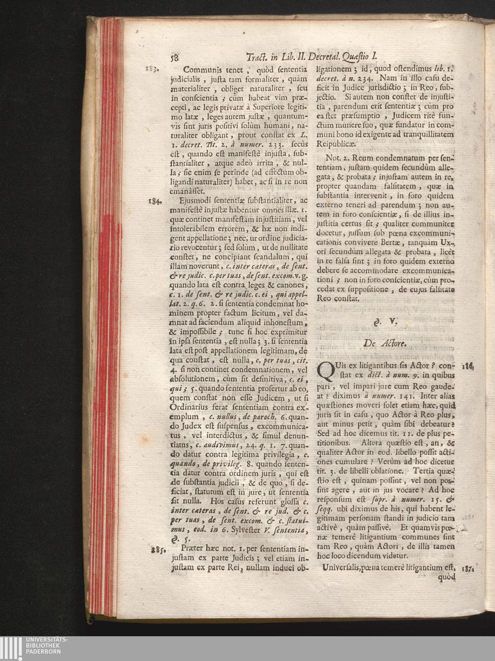 Tomus II (1708) In Librum II. Decretalium, Per Triginta Titulos Distributum, In Quo Agitur De Judiciis, Foro Competenti, Libelli Oblatione, Mutuis petitionibus, ...