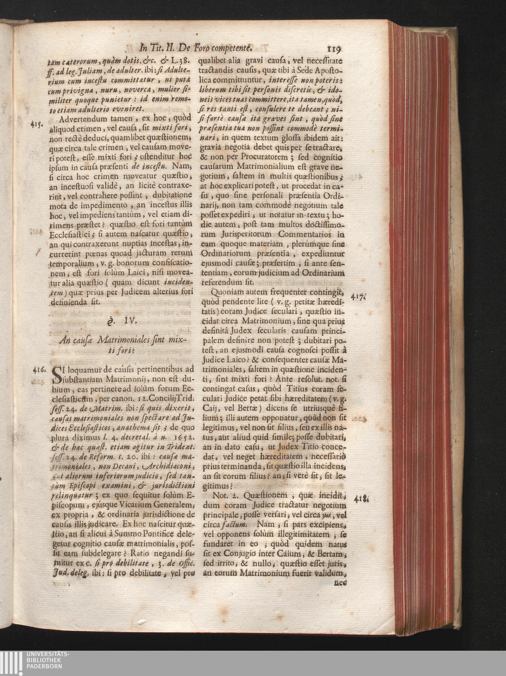 Tomus II (1708) In Librum II. Decretalium, Per Triginta Titulos Distributum, In Quo Agitur De Judiciis, Foro Competenti, Libelli Oblatione, Mutuis petitionibus, ...