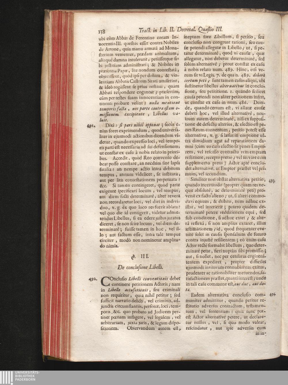Tomus II (1708) In Librum II. Decretalium, Per Triginta Titulos Distributum, In Quo Agitur De Judiciis, Foro Competenti, Libelli Oblatione, Mutuis petitionibus, ...