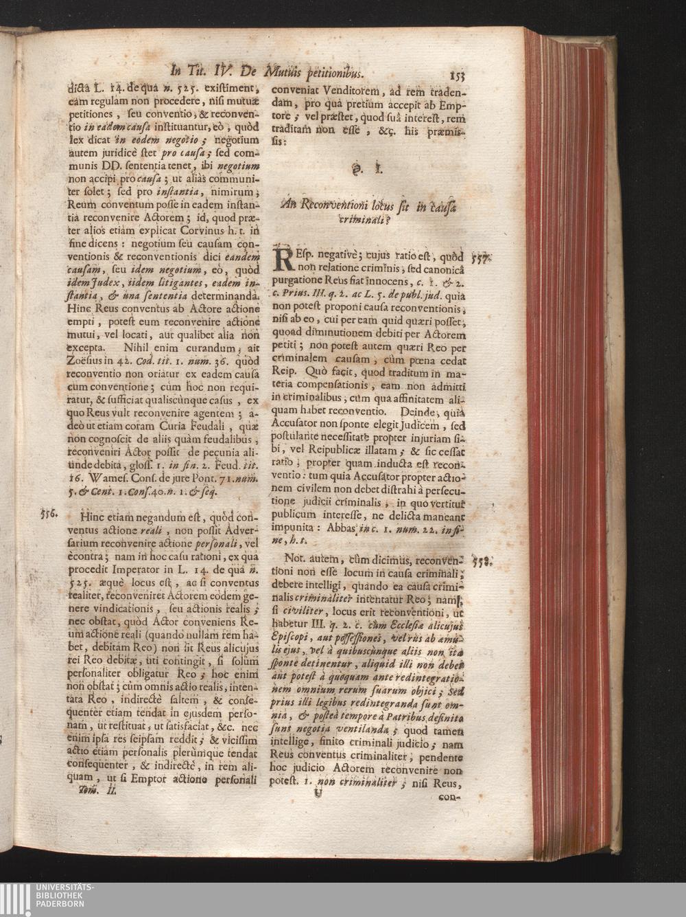 Tomus II (1708) In Librum II. Decretalium, Per Triginta Titulos Distributum, In Quo Agitur De Judiciis, Foro Competenti, Libelli Oblatione, Mutuis petitionibus, ...