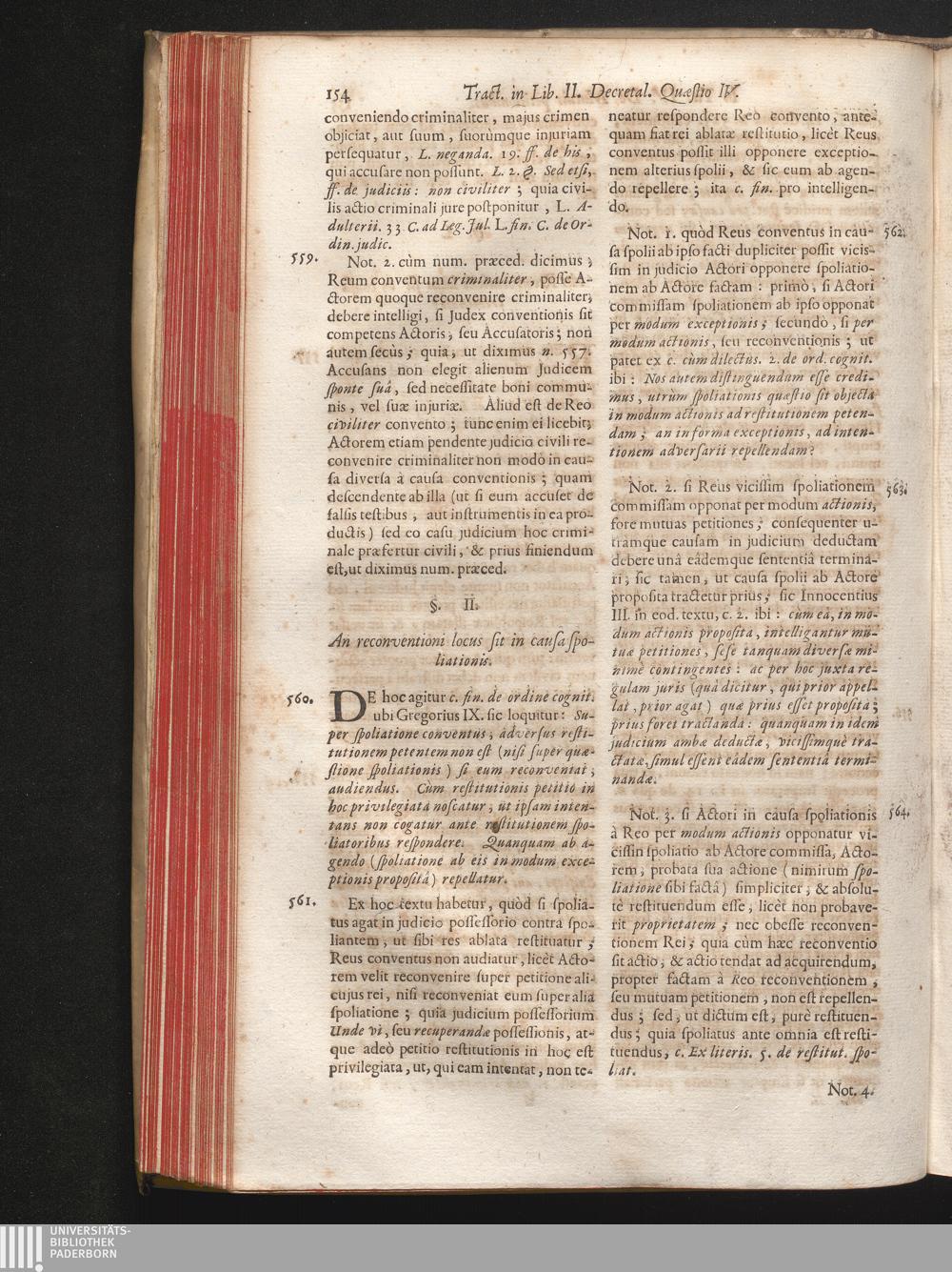 Tomus II (1708) In Librum II. Decretalium, Per Triginta Titulos Distributum, In Quo Agitur De Judiciis, Foro Competenti, Libelli Oblatione, Mutuis petitionibus, ...