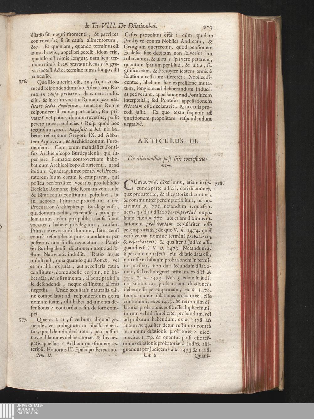 Tomus II (1708) In Librum II. Decretalium, Per Triginta Titulos Distributum, In Quo Agitur De Judiciis, Foro Competenti, Libelli Oblatione, Mutuis petitionibus, ...