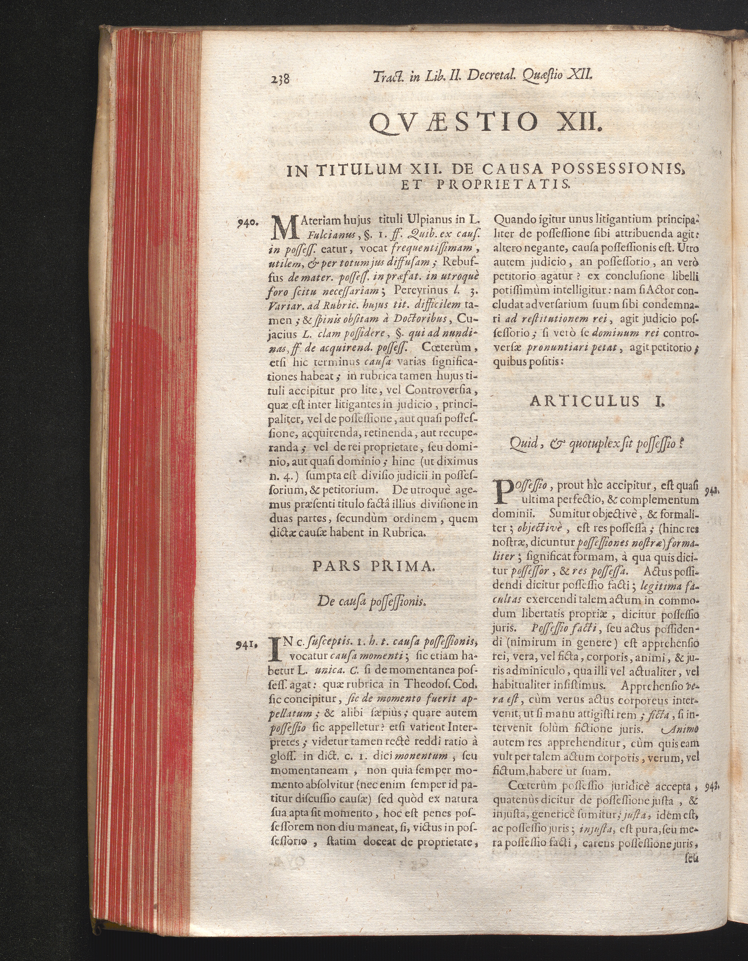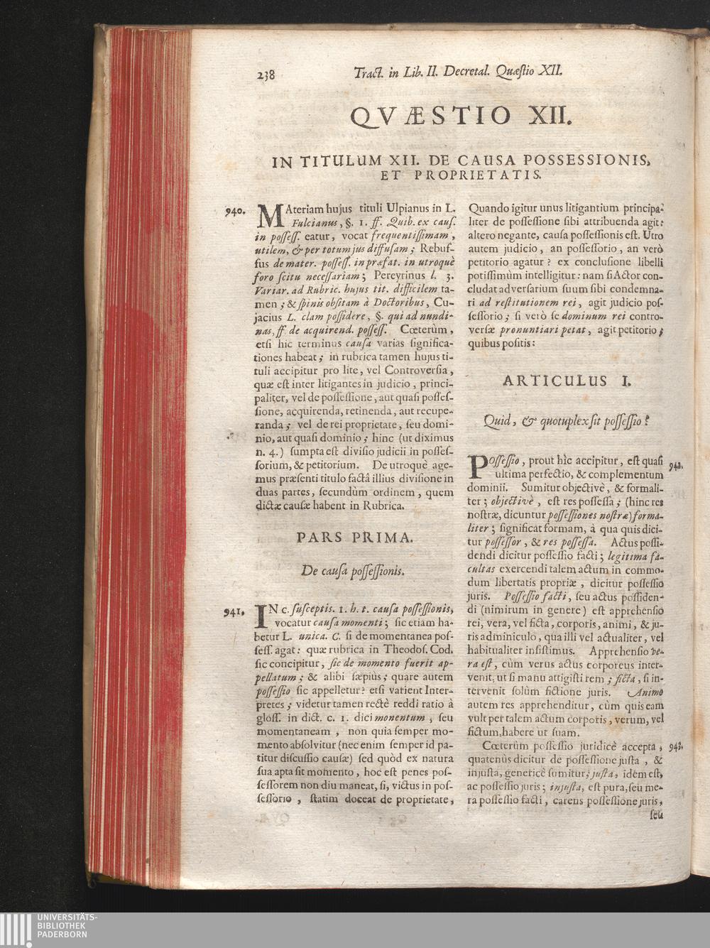 Qvæstio XII. In Titulum XII. De Causa Possessionis, Et Proprietatis.