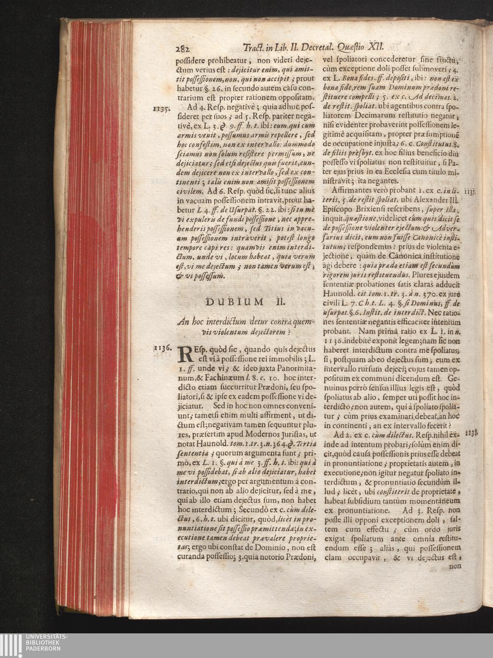 Tomus II (1708) In Librum II. Decretalium, Per Triginta Titulos Distributum, In Quo Agitur De Judiciis, Foro Competenti, Libelli Oblatione, Mutuis petitionibus, ...
