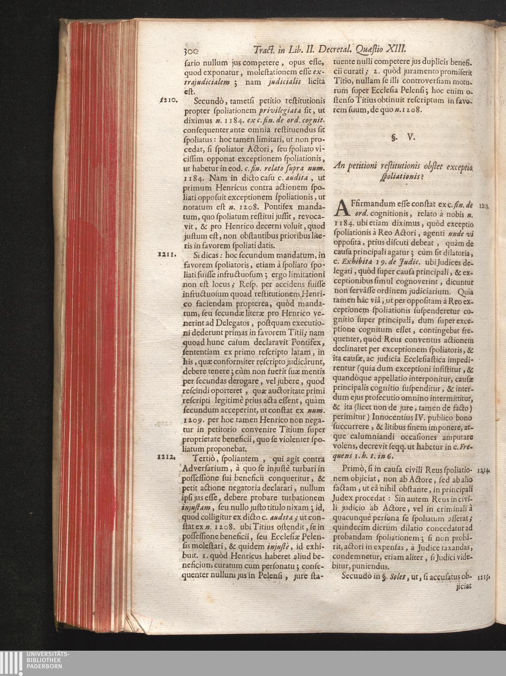 Tomus II (1708) In Librum II. Decretalium, Per Triginta Titulos Distributum, In Quo Agitur De Judiciis, Foro Competenti, Libelli Oblatione, Mutuis petitionibus, ...
