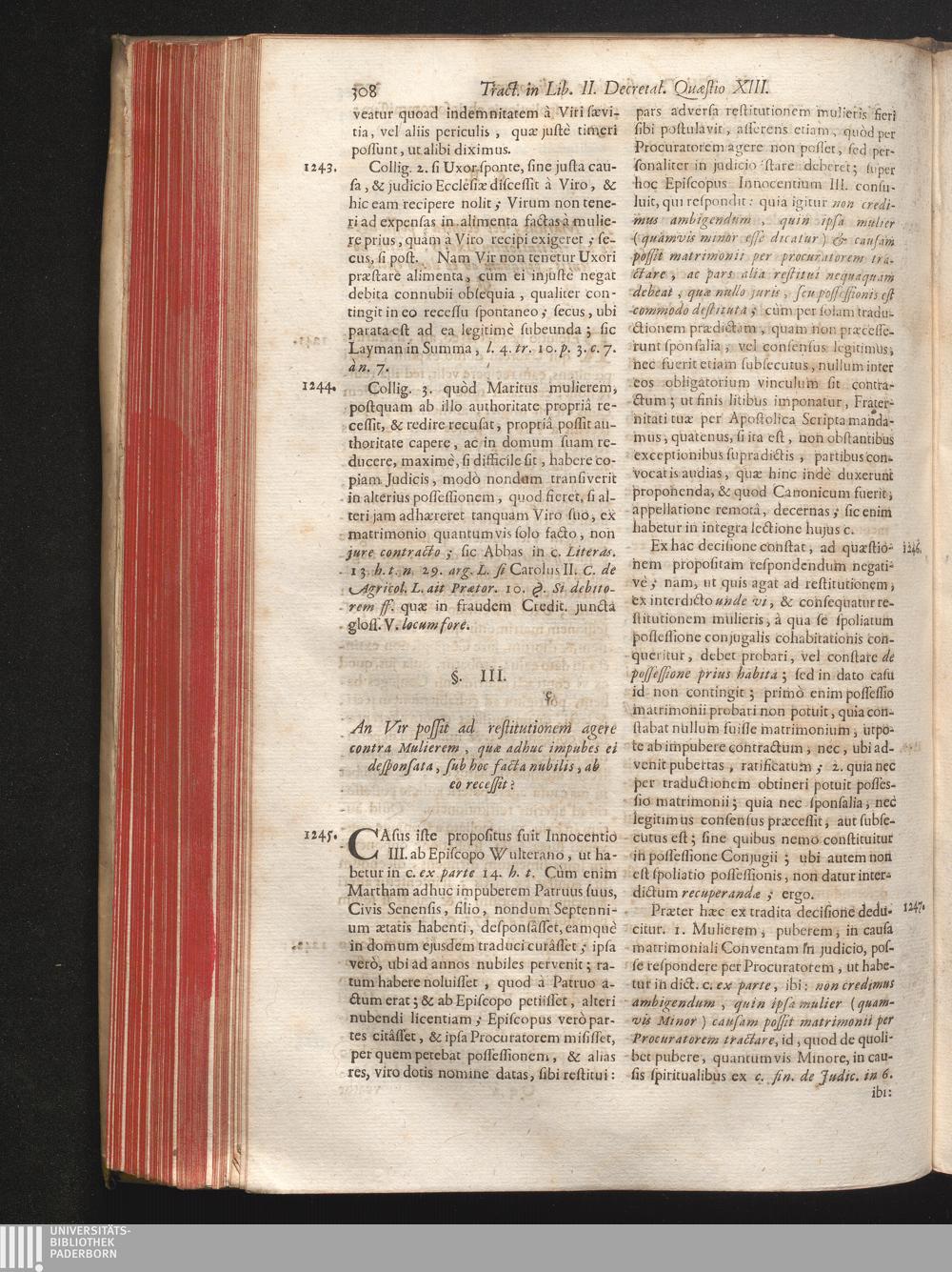 Tomus II (1708) In Librum II. Decretalium, Per Triginta Titulos Distributum, In Quo Agitur De Judiciis, Foro Competenti, Libelli Oblatione, Mutuis petitionibus, ...