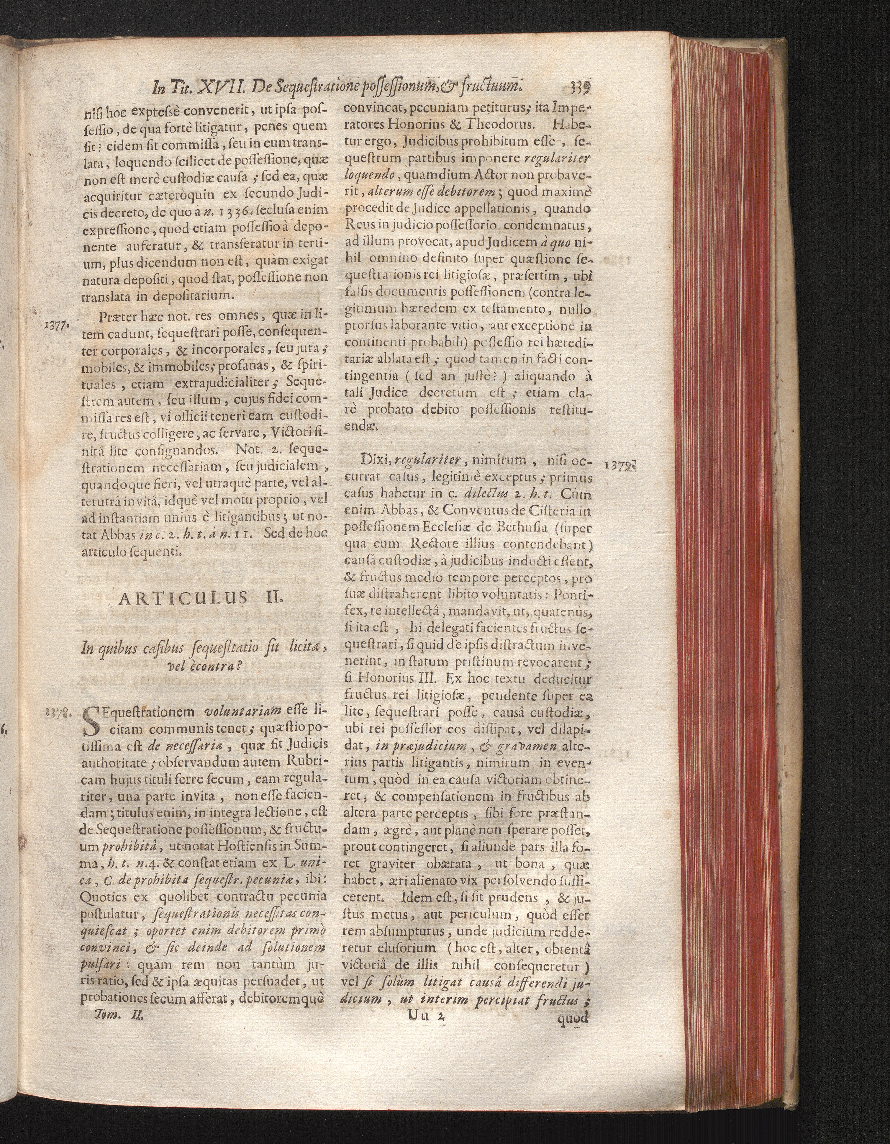 Qvæstio XVII. In Tit. XVII. De Seqvestratione Possessionum, Et Fructuum.
