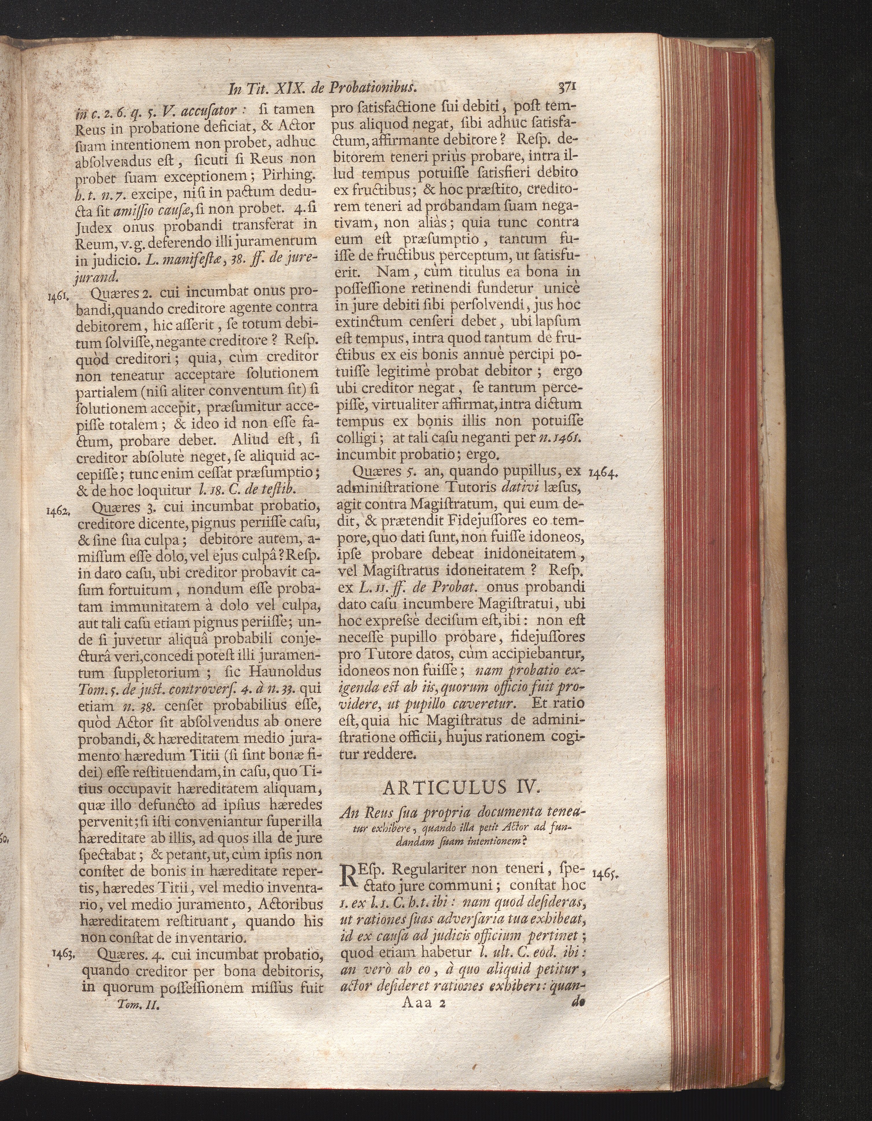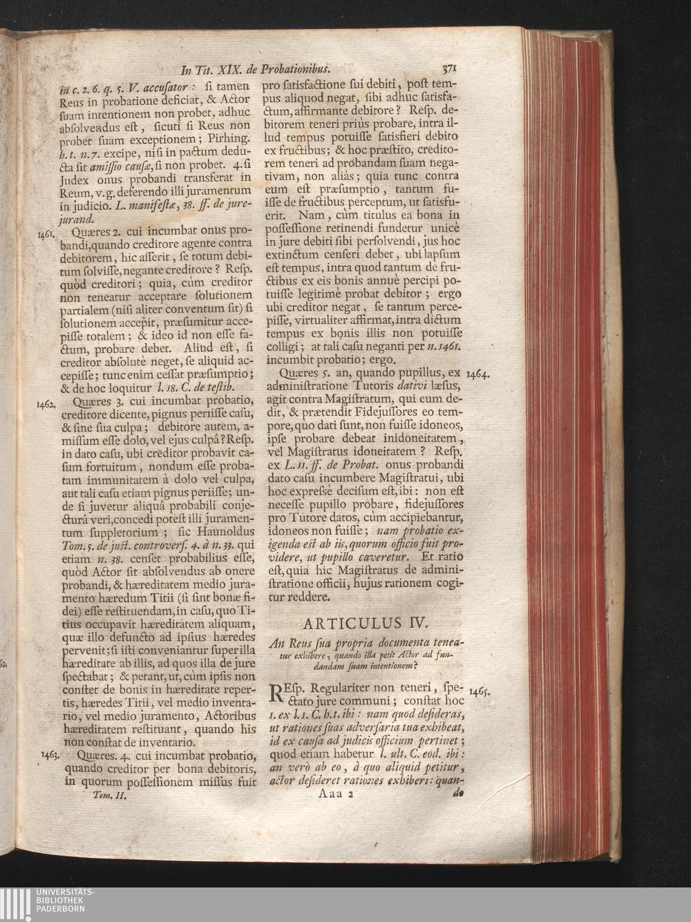 Articulus IV. An Reus sua propria documenta teneatur exhibere, quando illa petit[...]