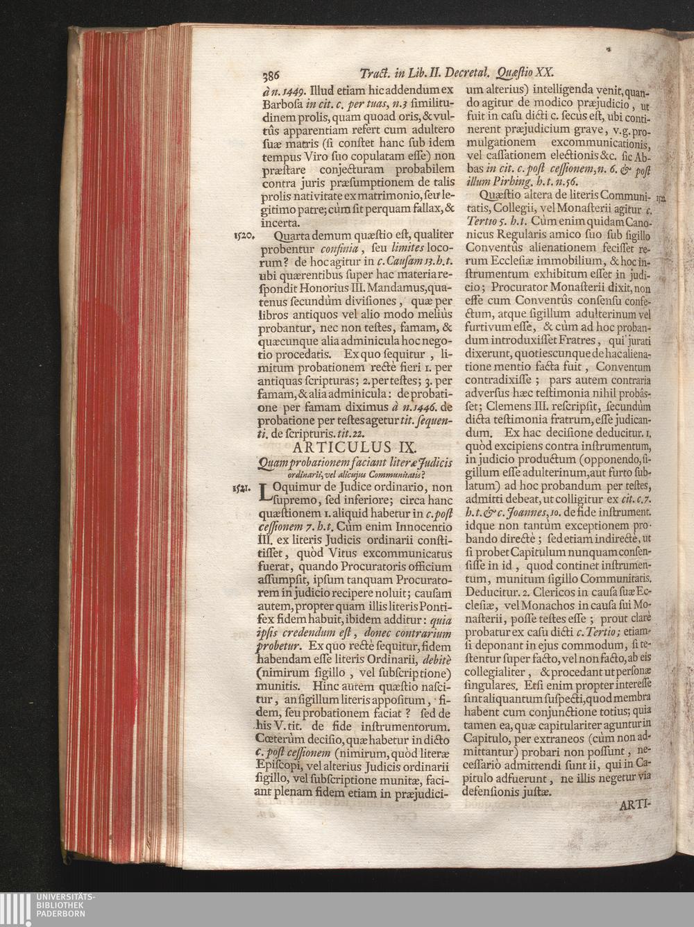 Articulus IX. quam probationem faciant literæ Judicis ordinarii, vel alicujus Co[...]