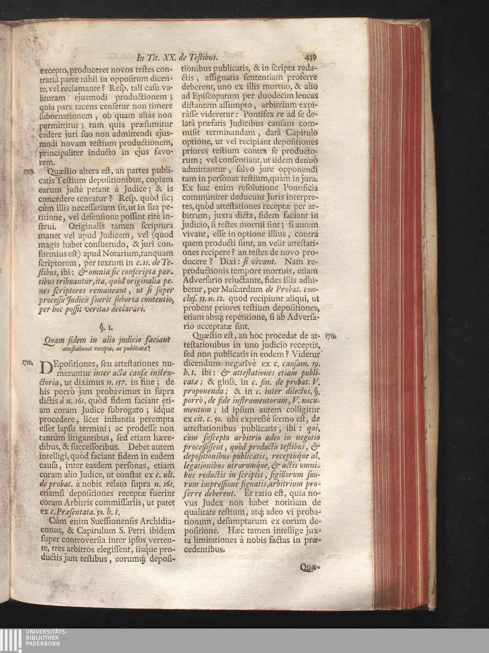 Tomus II (1708) In Librum II. Decretalium, Per Triginta Titulos Distributum, In Quo Agitur De Judiciis, Foro Competenti, Libelli Oblatione, Mutuis petitionibus, ...