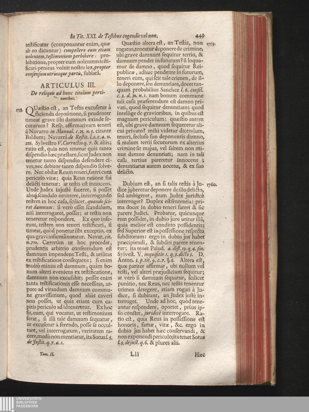 Tomus II (1708) In Librum II. Decretalium, Per Triginta Titulos Distributum, In Quo Agitur De Judiciis, Foro Competenti, Libelli Oblatione, Mutuis petitionibus, ...