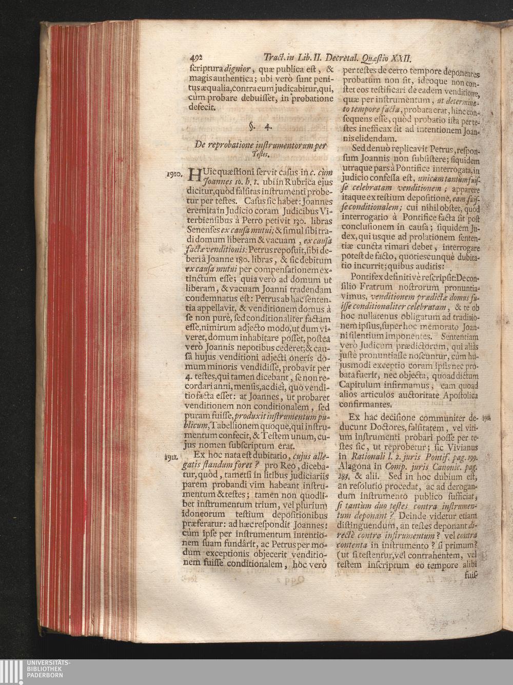 Tomus II (1708) In Librum II. Decretalium, Per Triginta Titulos Distributum, In Quo Agitur De Judiciis, Foro Competenti, Libelli Oblatione, Mutuis petitionibus, ...