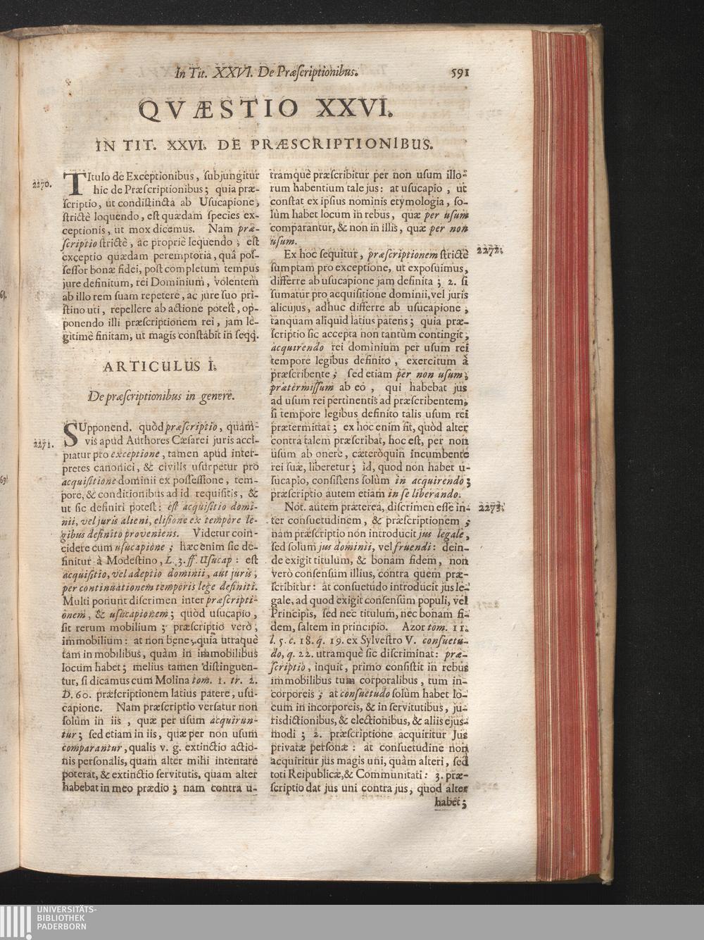 Qvæstio XXVI. In Tit XXVI. De Præcriptionibus.