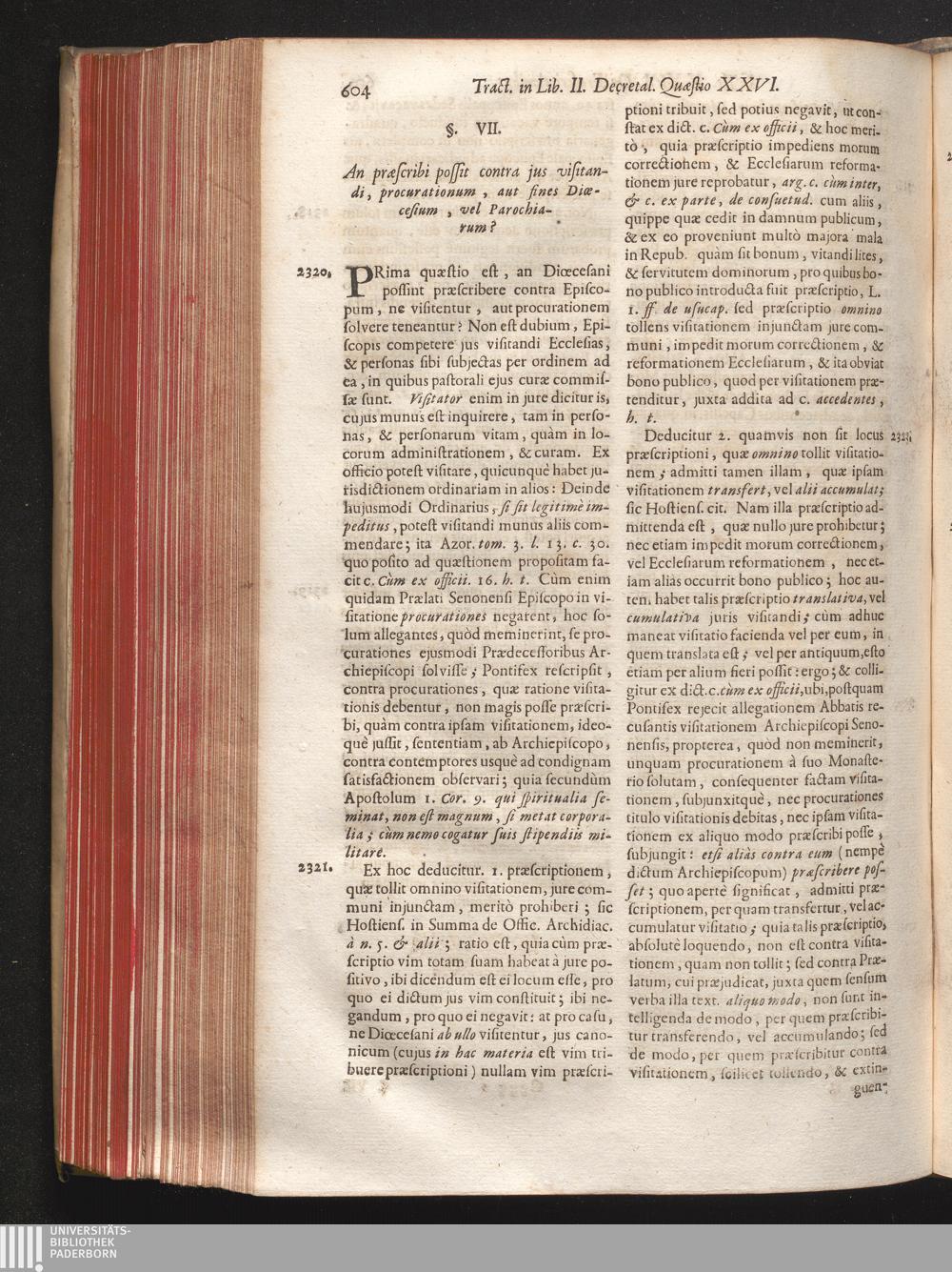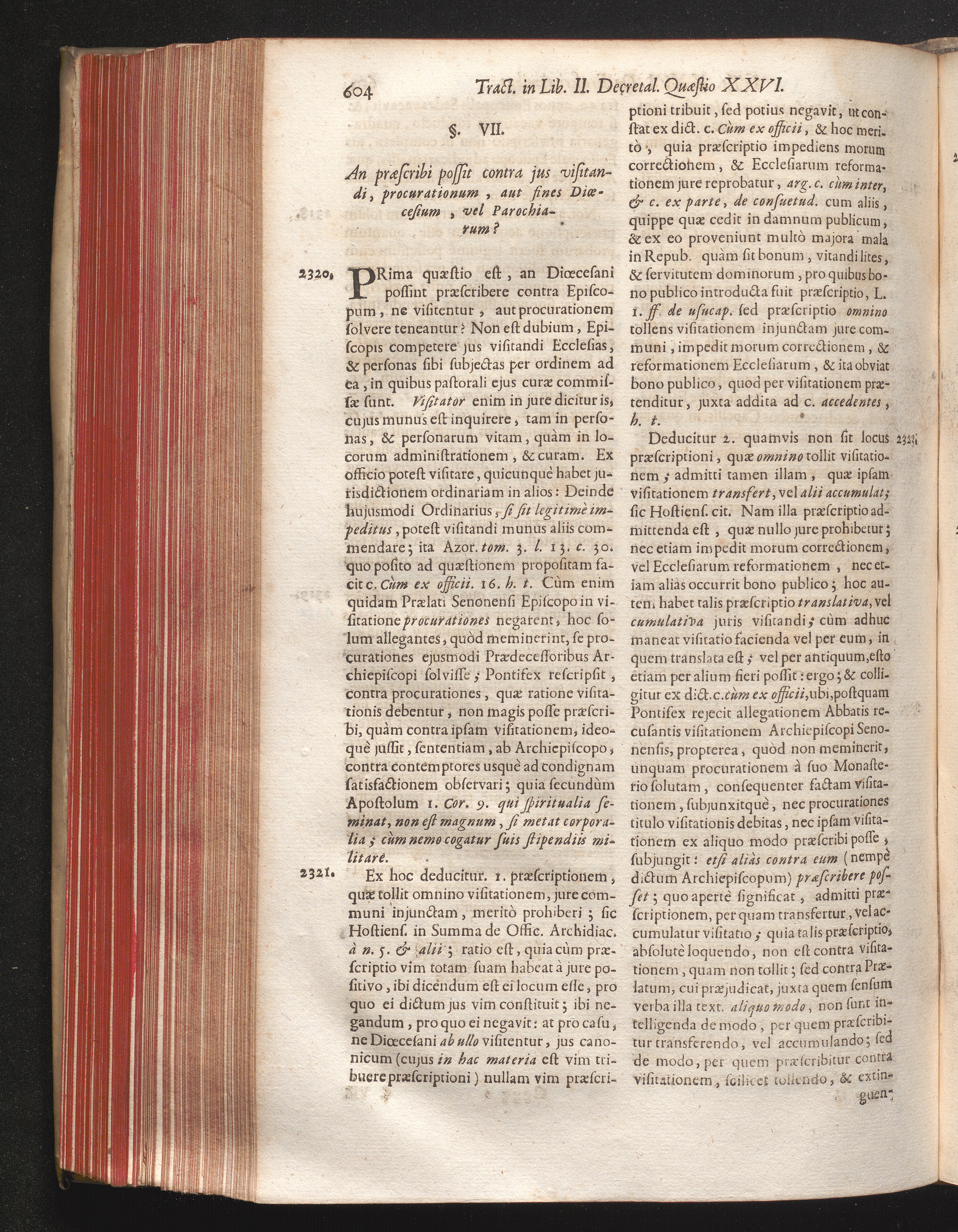 §. VII. An præscribi possit contra jus visitandi, procurationem, aut fines Diœcesium,[...]