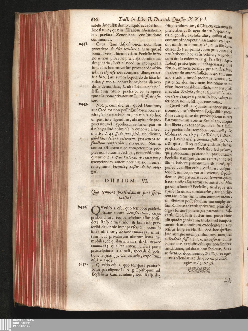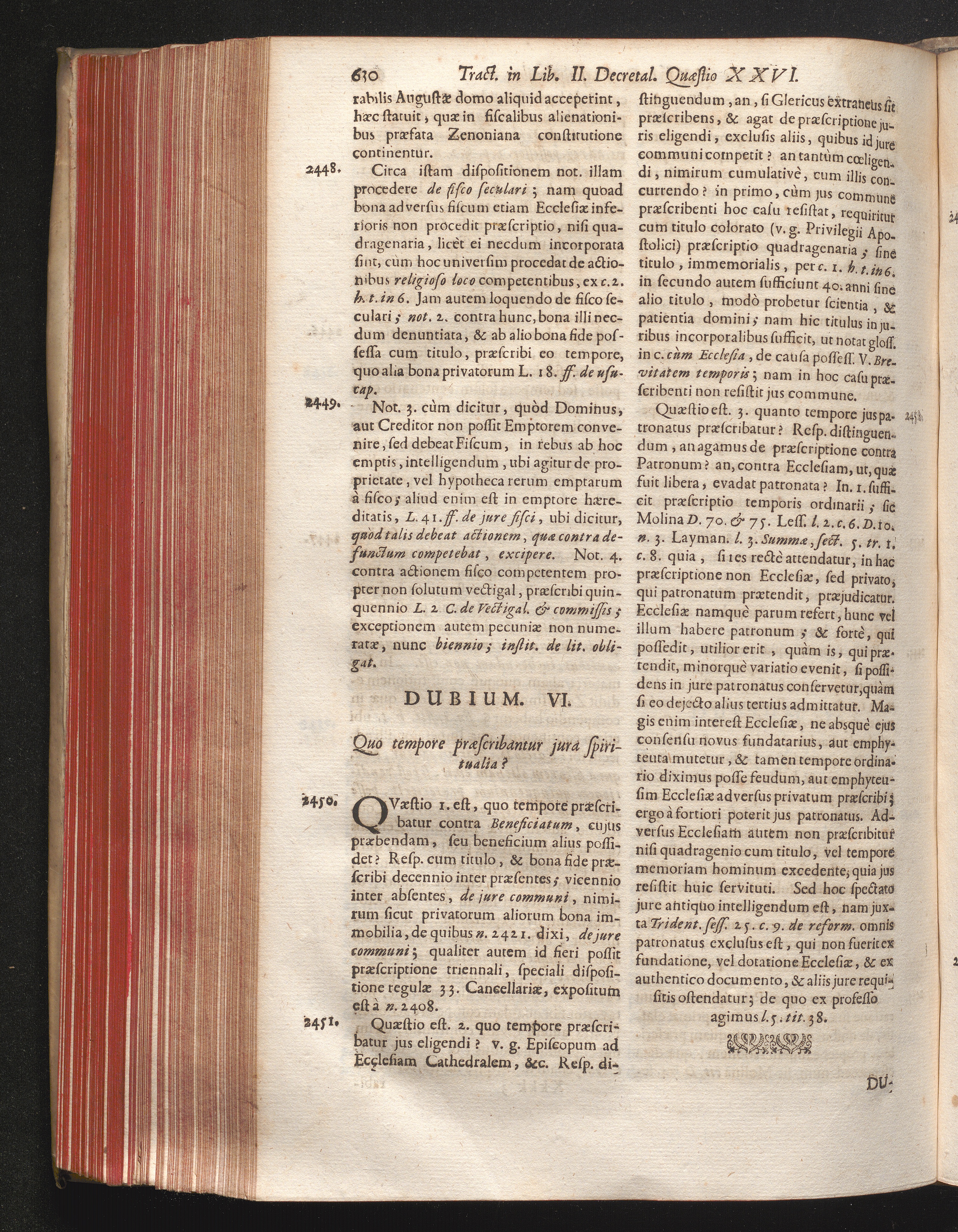 Dubium. VI. Quo tempore præscribantur jura spiritualia?