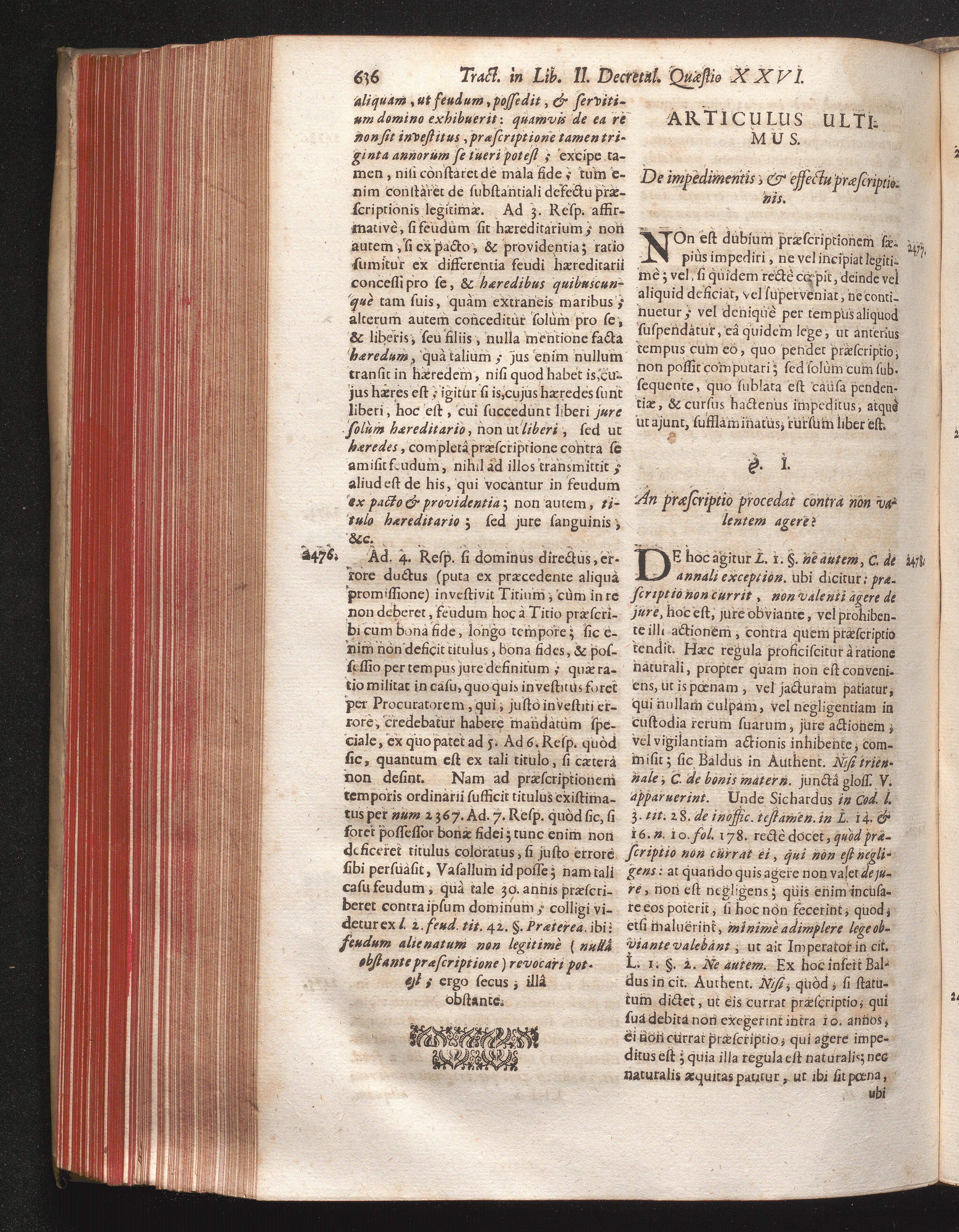 Articulus Ultimus. De impedimentis, & effectu præscriptionis.