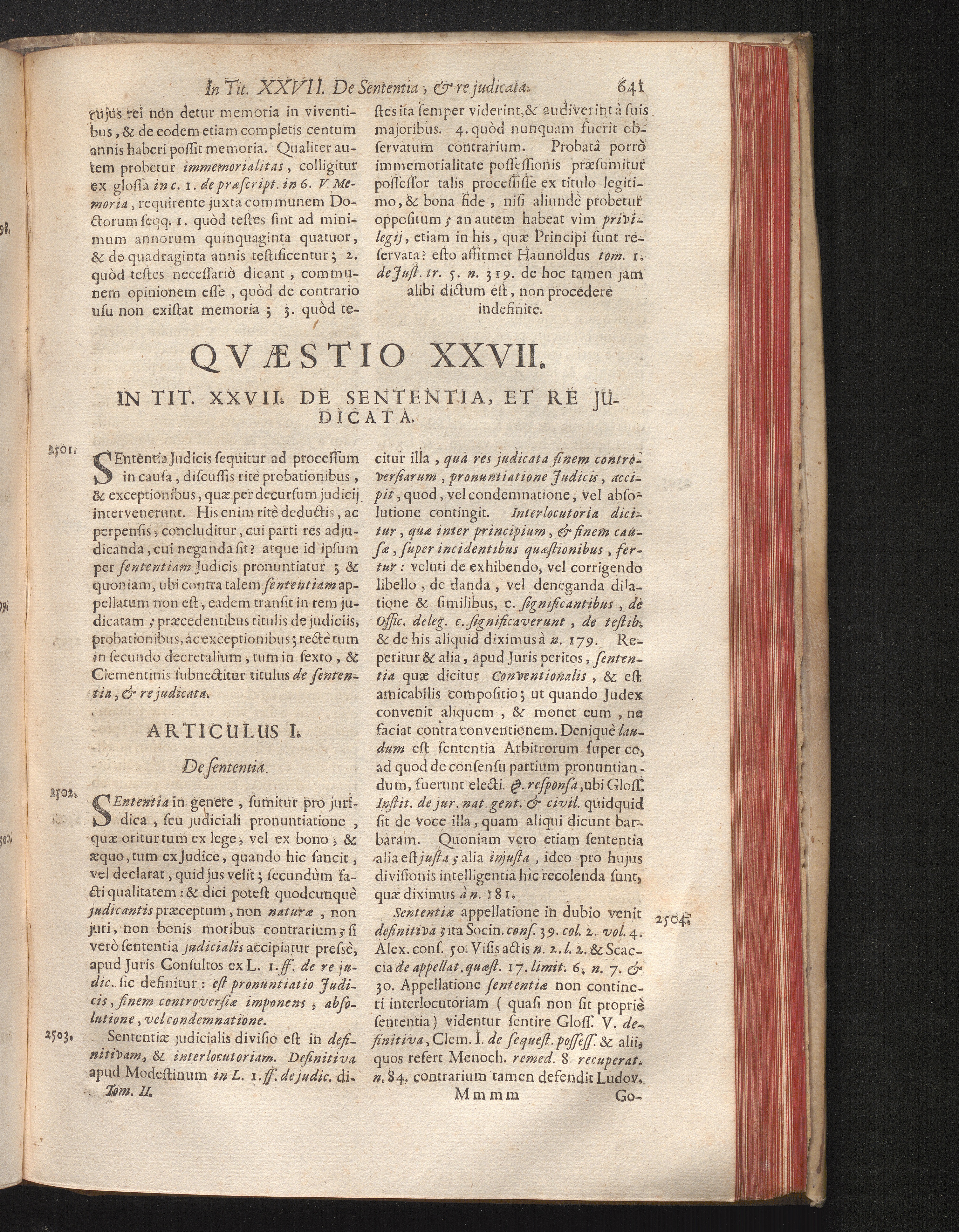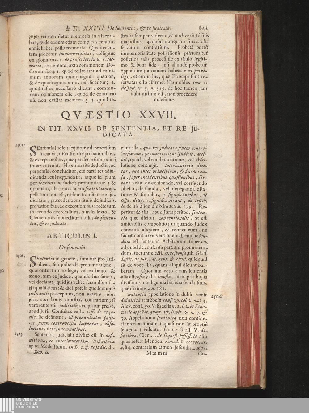Qvæstio XXVII. In Tit. XXVII. De Sententia, Et Re Judicata.