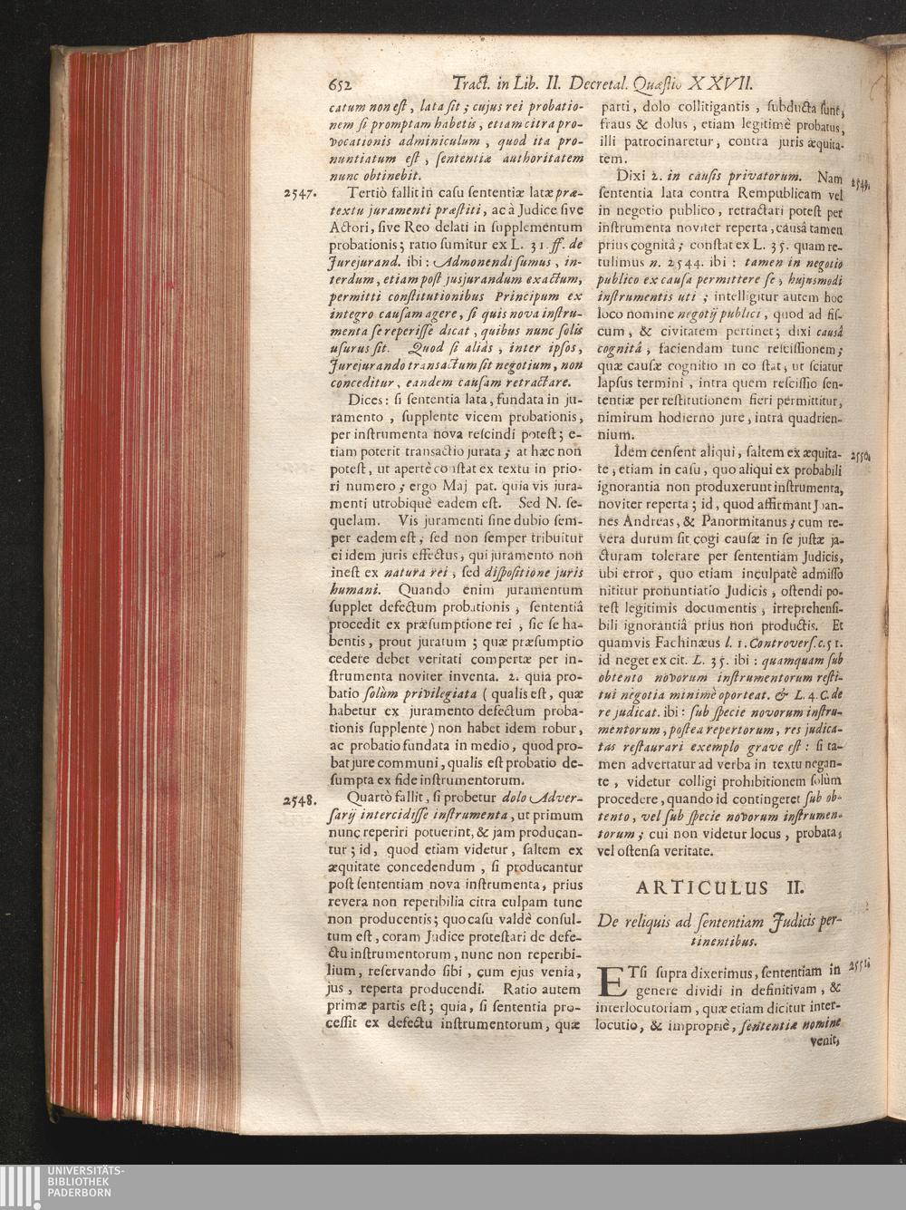 Tomus II (1708) In Librum II. Decretalium, Per Triginta Titulos Distributum, In Quo Agitur De Judiciis, Foro Competenti, Libelli Oblatione, Mutuis petitionibus, ...