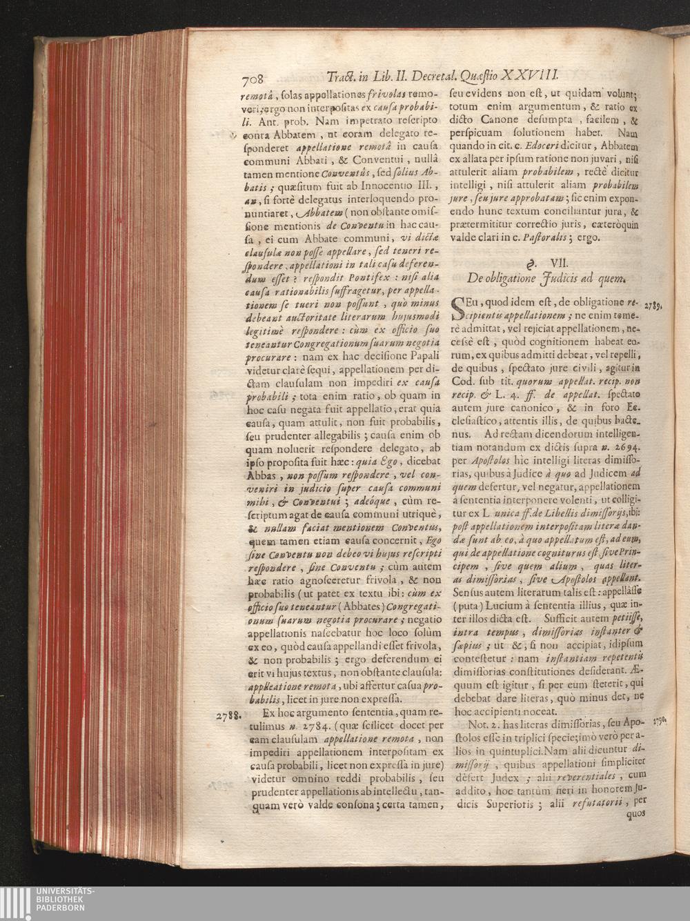 Tomus II (1708) In Librum II. Decretalium, Per Triginta Titulos Distributum, In Quo Agitur De Judiciis, Foro Competenti, Libelli Oblatione, Mutuis petitionibus, ...