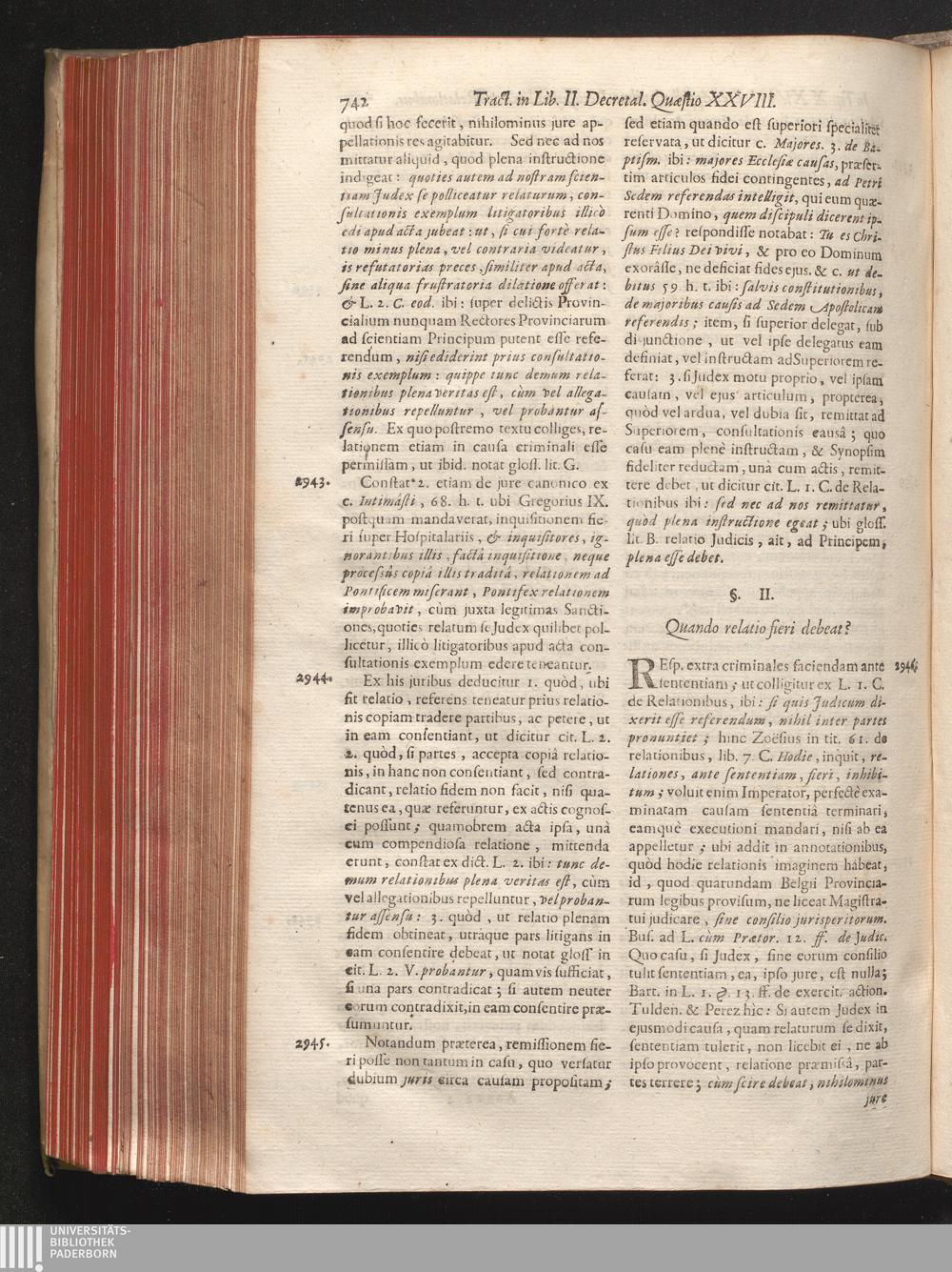 Tomus II (1708) In Librum II. Decretalium, Per Triginta Titulos Distributum, In Quo Agitur De Judiciis, Foro Competenti, Libelli Oblatione, Mutuis petitionibus, ...