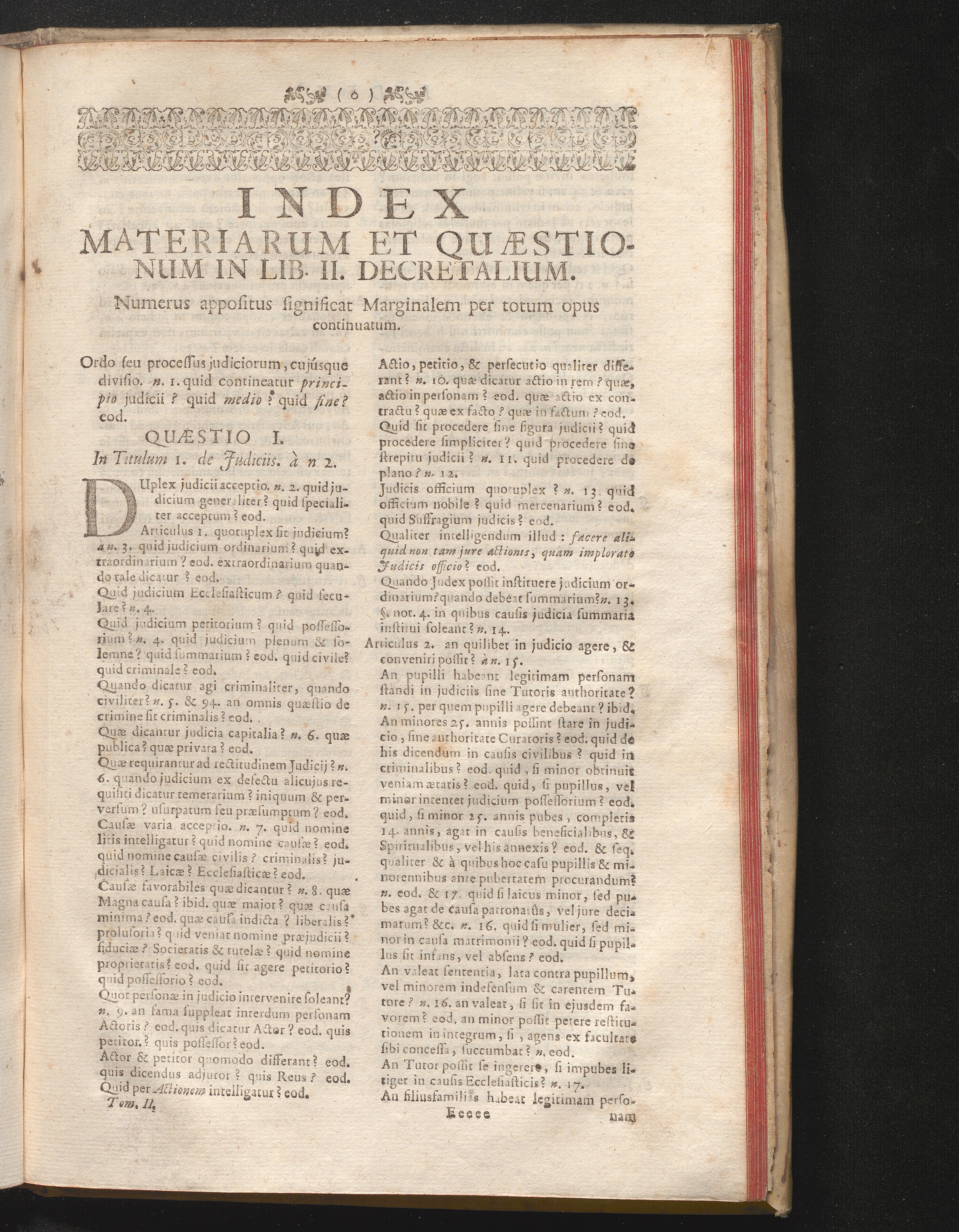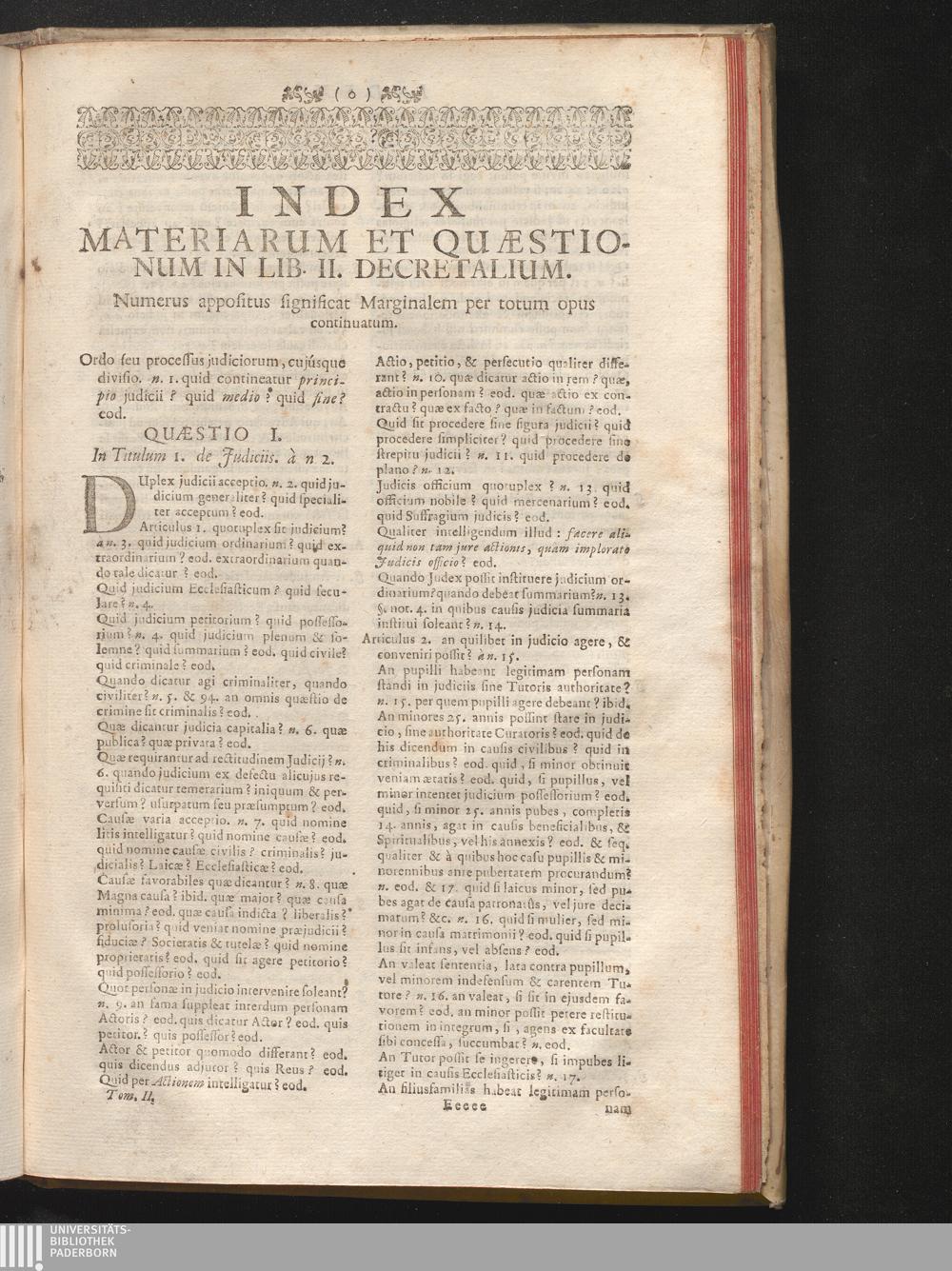 Index Materiarum Et Quæstionum In Lib. II. Decretalium.