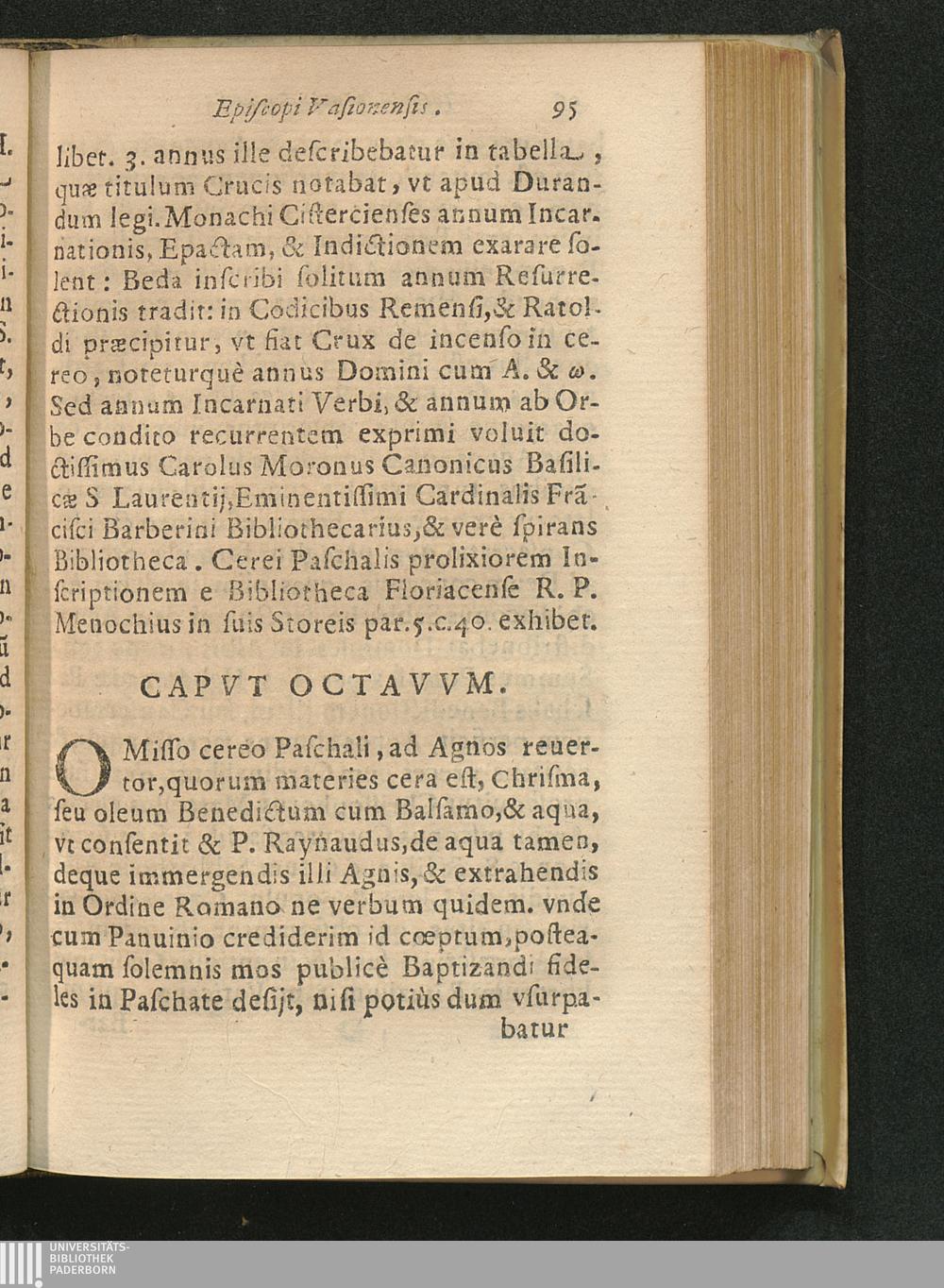 De Baptismate Paschali Et Origine Ac Ritv Consecrandi Agnos Dei Liber : Ex Onuphrij Panuinij Veronen. Fratris Eremitæ Augustiniani Commentarijs ; In historiam Ecclesiasticam excerptus ; Cum Corollariis Iosephi Mariæ Suaresij Episcopi Vasionensis Ad Alexandrum VII Pont. Opt. Max.