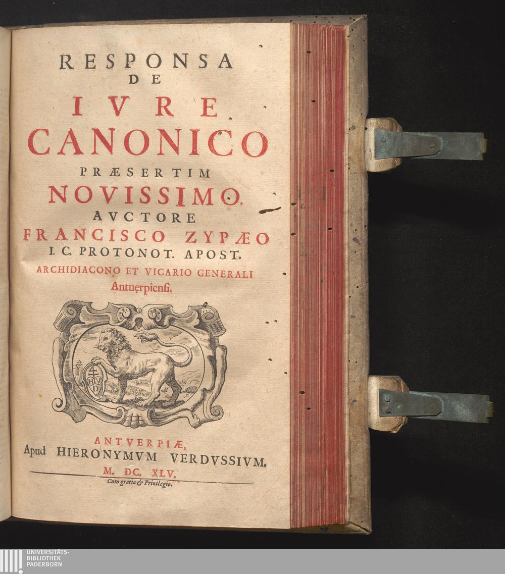 Responsa De Ivre Canonico Præsertim Novissimo / Avctore Francisco Zypæo I. C. Protonot. Apost. Archidiacono Et Vicario Generali Antuerpiensi