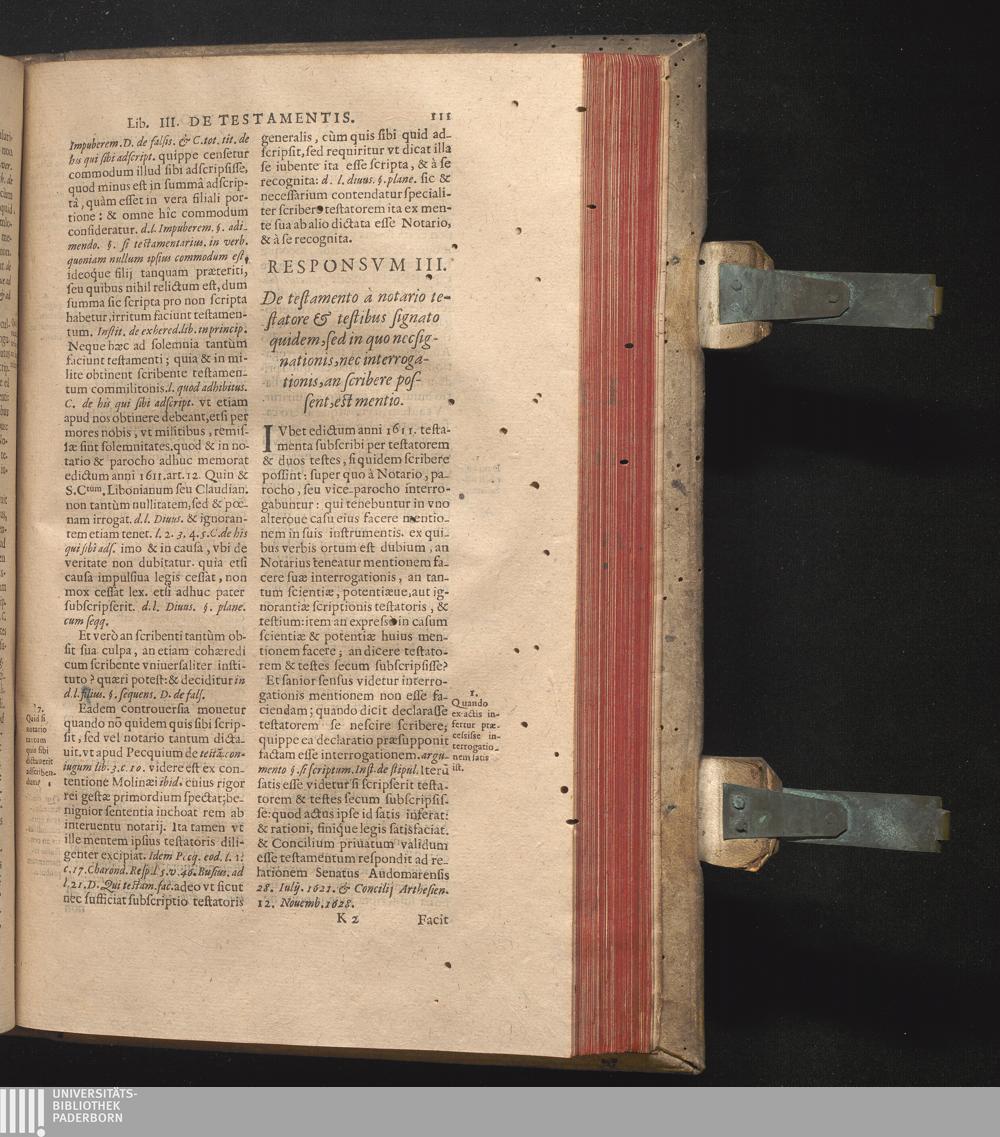 Resp. III. De testamento à notario, testatore, & testibus signato quidem; sed in[...]