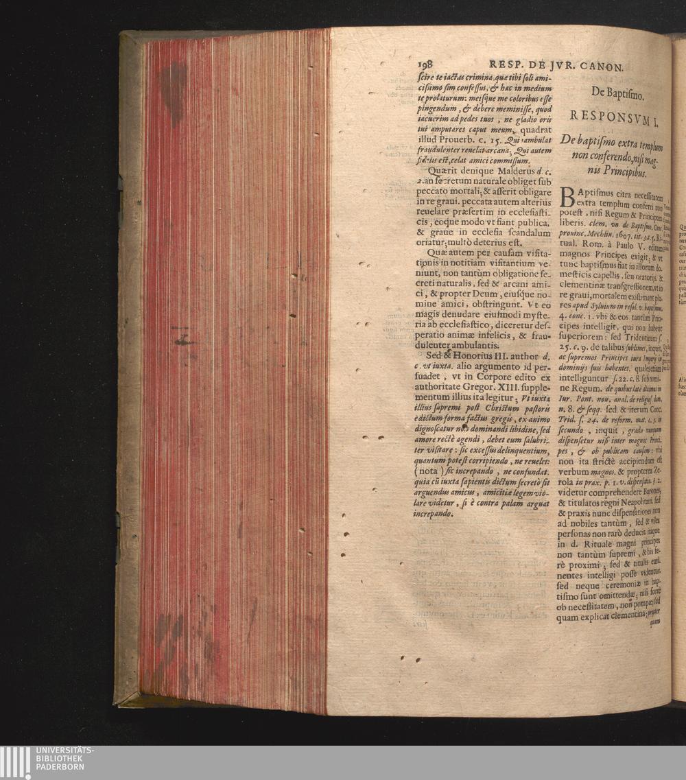 Resp. I. De Baptismo extra templum non conferendo, nisi magnis Principibus.