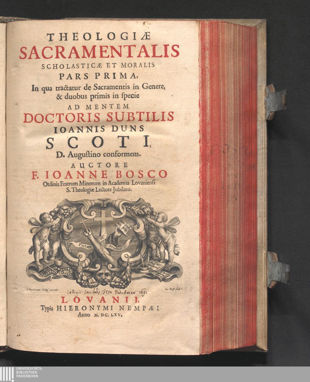 Pars Prima (1665) In qua tractatur de Sacramentis in Genere, & duobus primis in specie