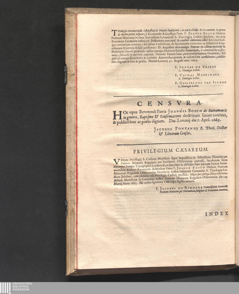 Pars Prima (1665) In qua tractatur de Sacramentis in Genere, & duobus primis in specie