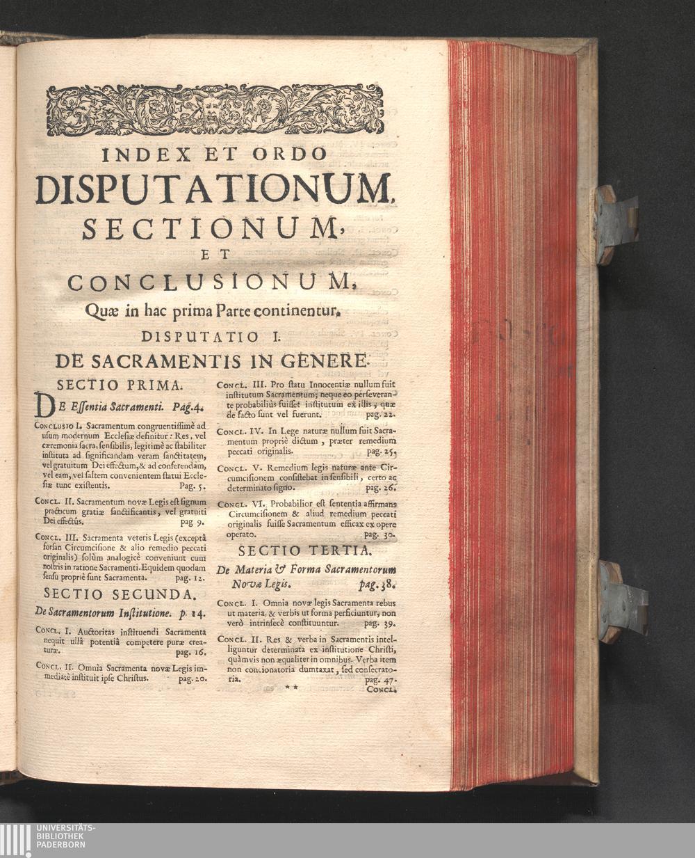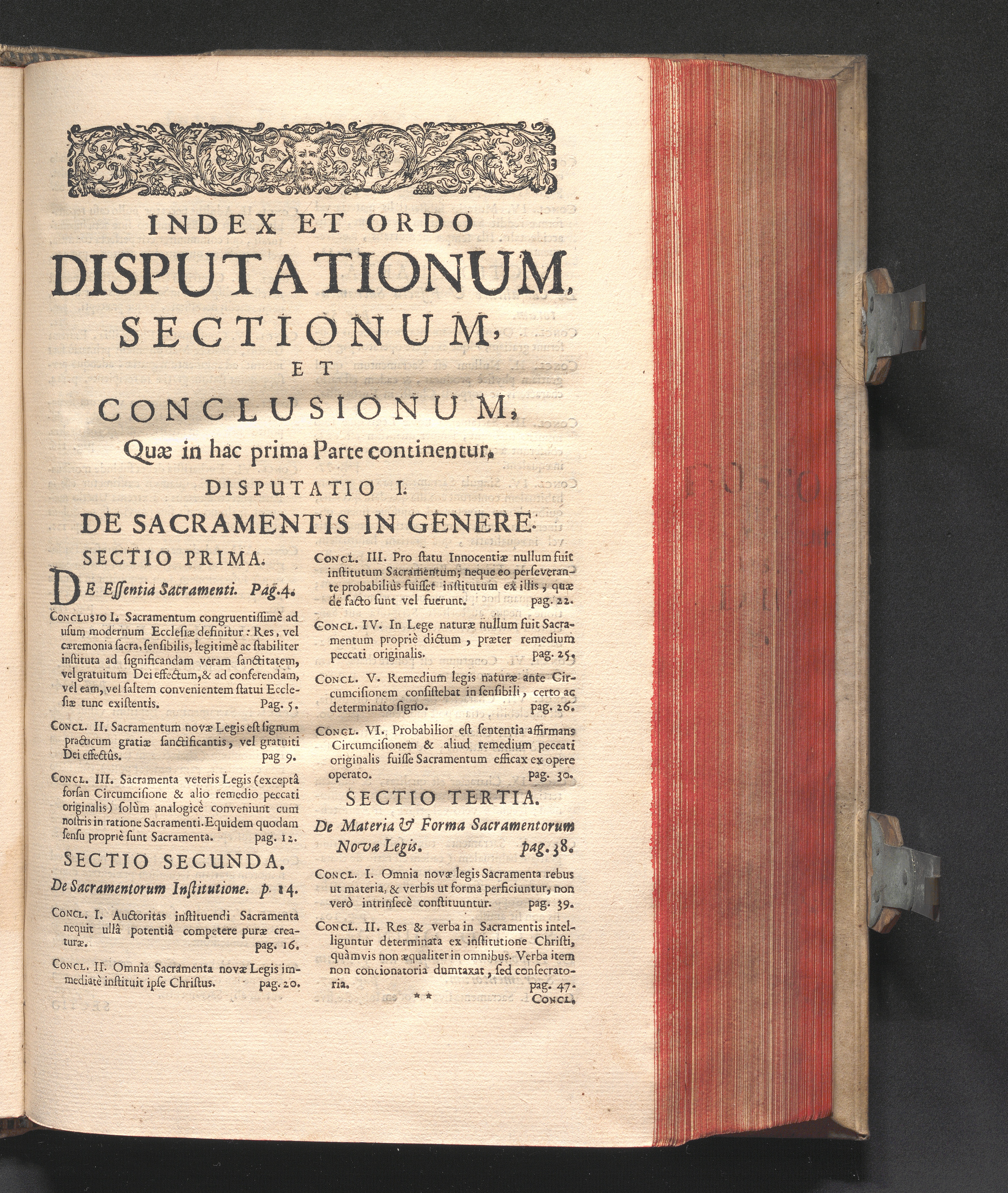 Index Et Ordo Disputationum, Sectionum, Et Conclusionum, Quæ in hac prima Parte [...]