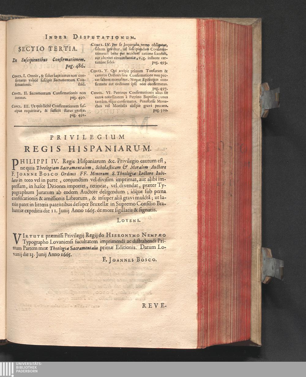 Pars Prima (1665) In qua tractatur de Sacramentis in Genere, & duobus primis in specie