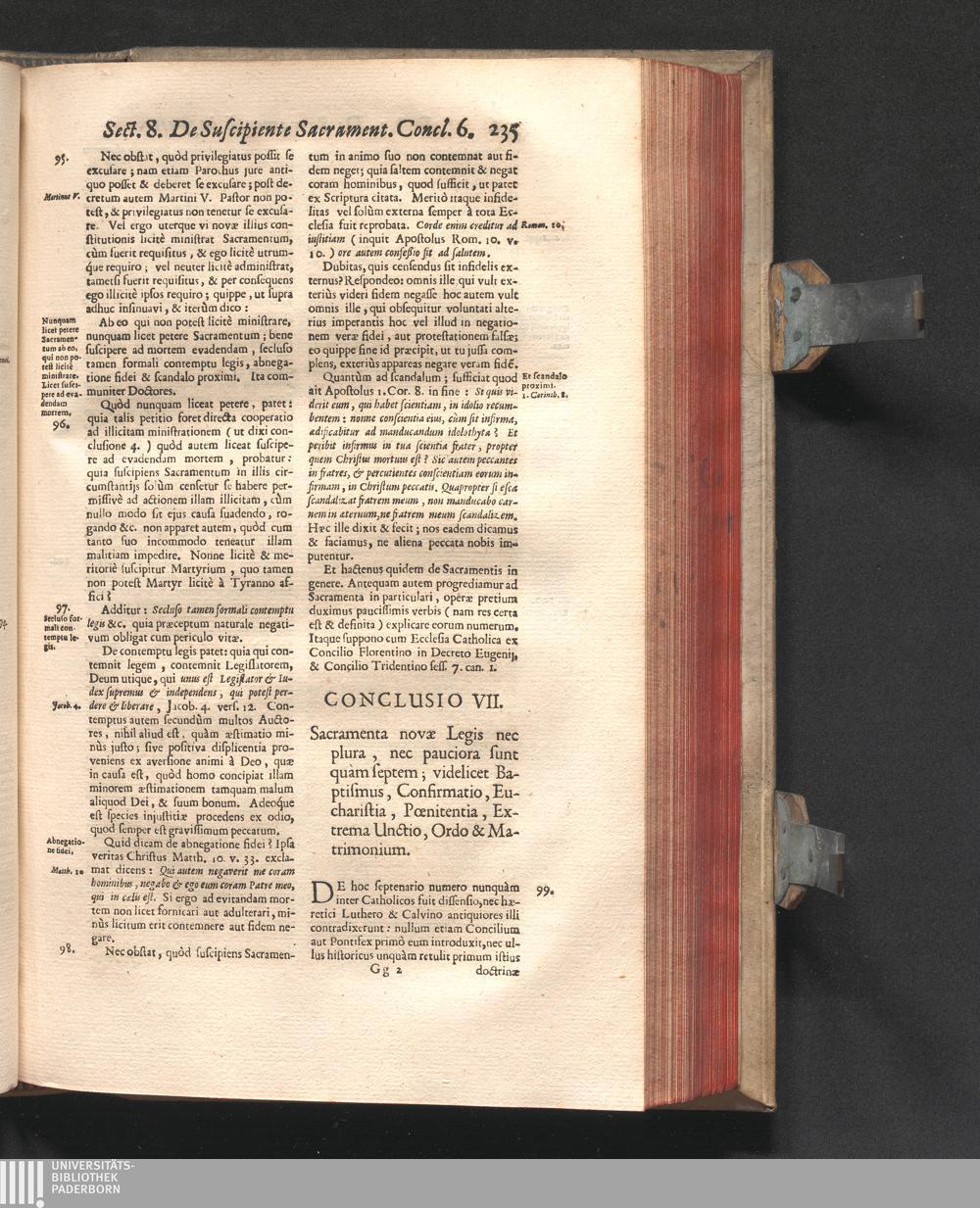 Concl. VII. Sacramenta novæ Legis, nec plura, nec pauciora sunt quàm septem; videlicet[...]