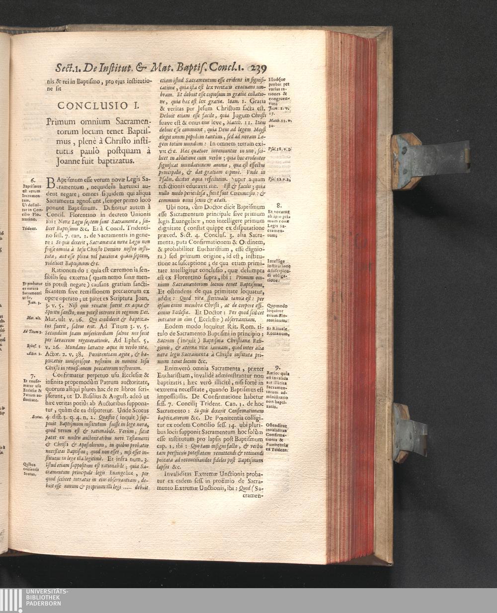 Concl. I. Primum omnium Sàcramentorum locum tenet Baptismus, plenè à Christo institutus[...]