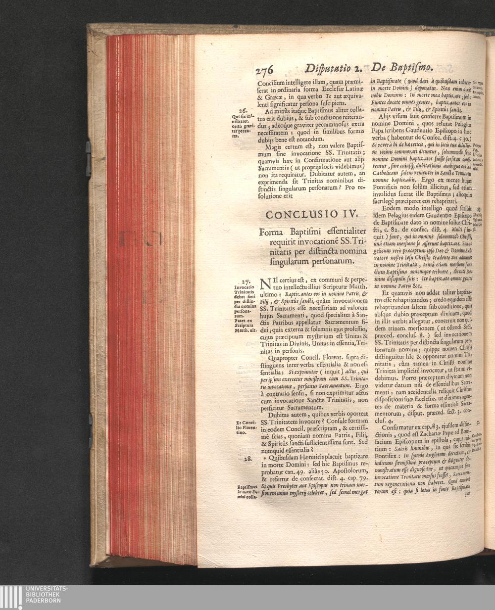 Concl. IV. Forma Baptismi essentialiter requirit invocationem SS. Trinitatis per[...]
