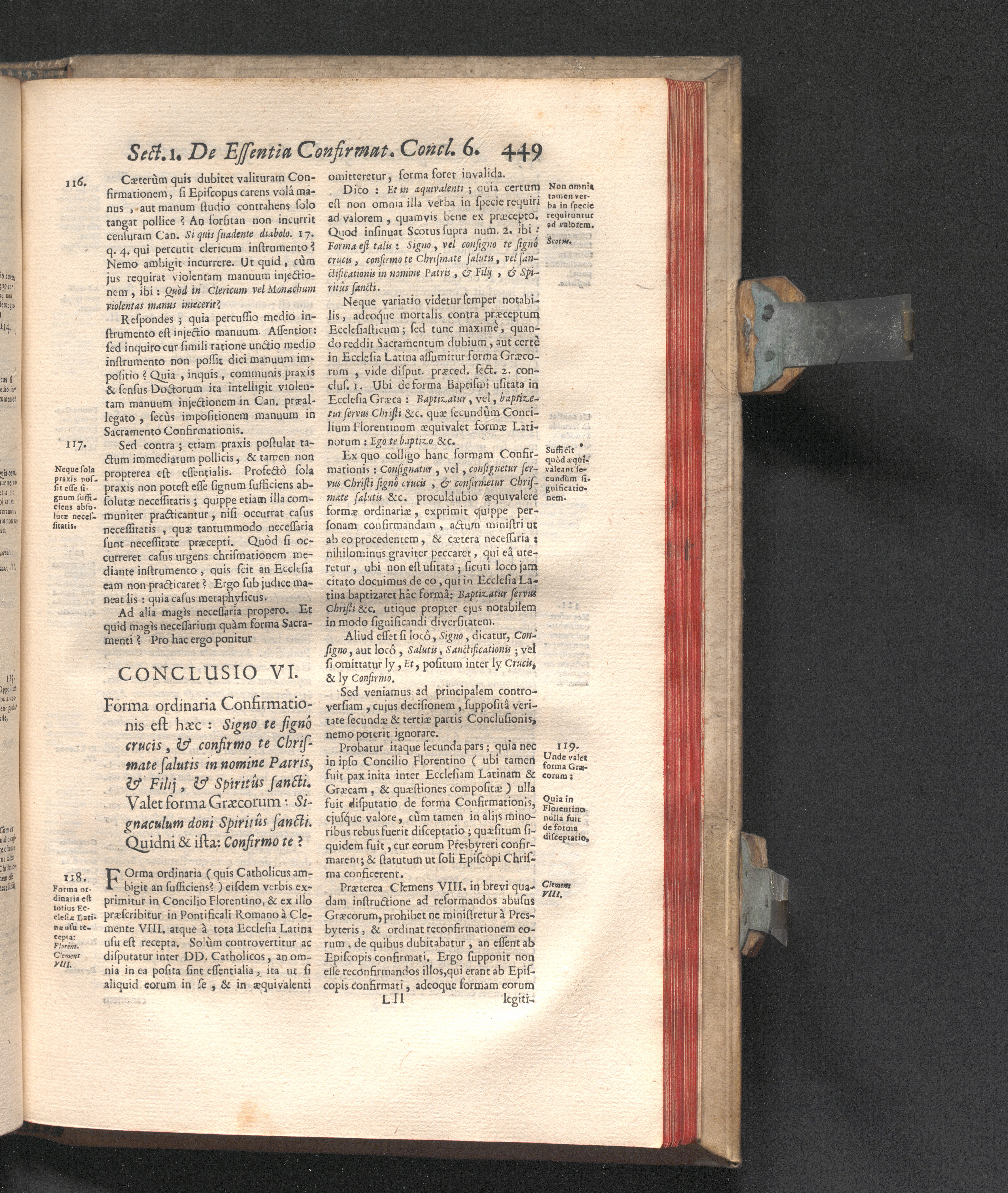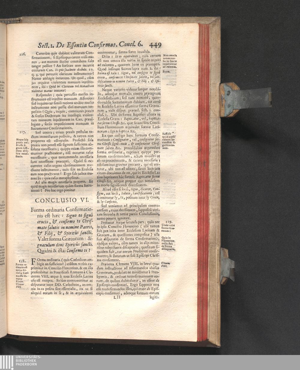 Concl. VI. Forma ordinaria Confirmationis est hæc: Signo te signô crucis, & confirmo[...]