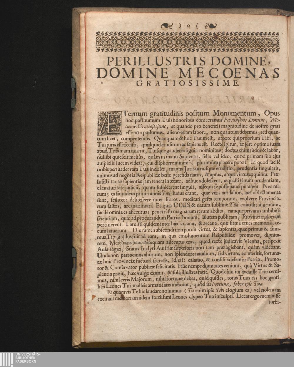 Perillustris Domine, Domine Mecœnas Gratiosissime.