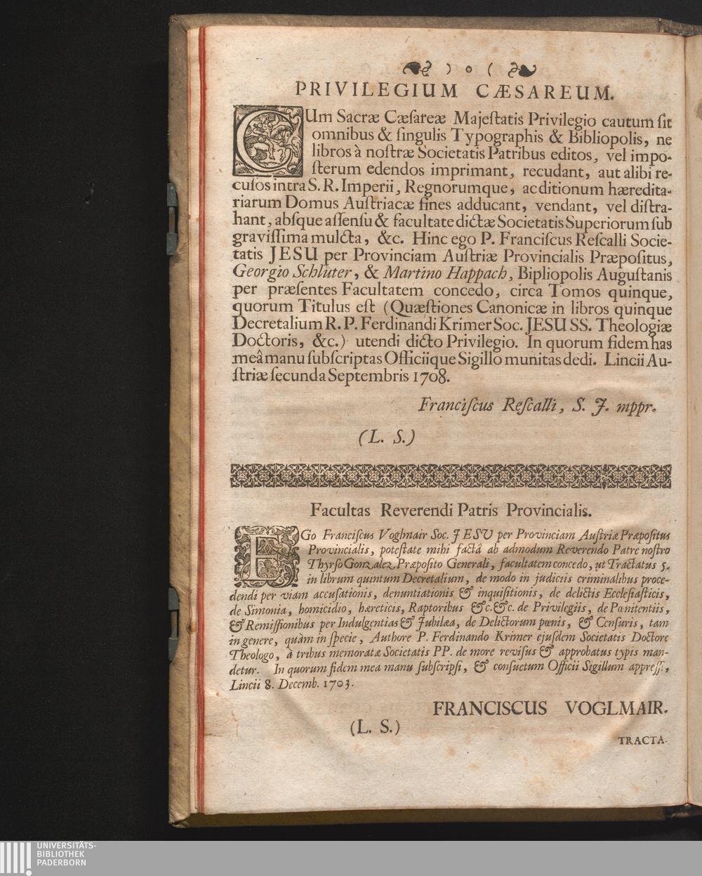 Tomus V (1709) In Librum V. Decretalium, Per Quadraginta, Et Unum Titulos Distributum, In quo agitur De Judicio criminali, exponendo primùm actiones in eo judicio instituendas, & suscipiendas, ...