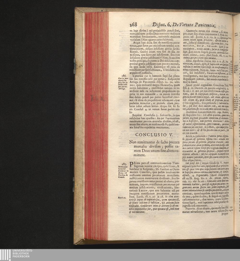 Concl. V. Non remittuntur de facto peccata morralia divisim; posset tamen Deus unum[...]