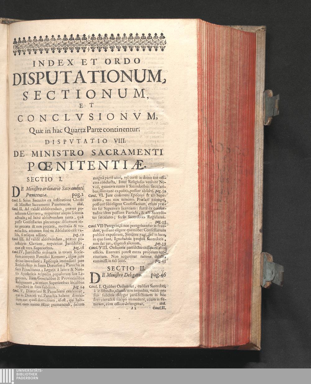 Index Et Ordo Disputationum, Sectionum, Et Conclusionvm, Quæ in hac Quarta Parte[...]