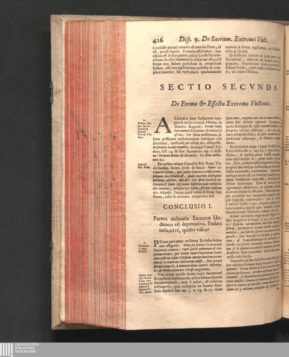 Concl. I. Forma ordinaria Extremæ Unctionis est deprecativa. Prolata indicativè,[...]
