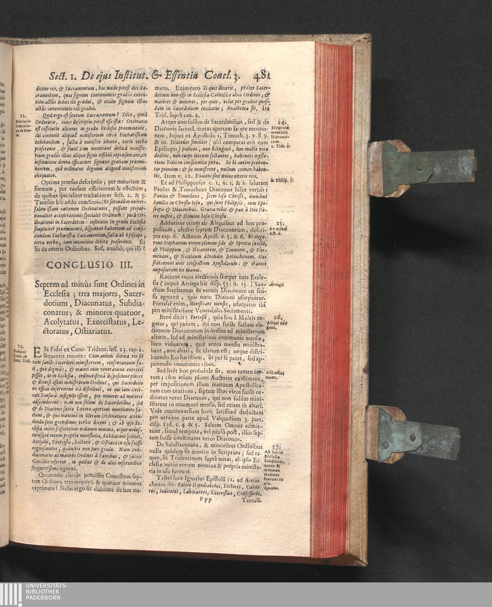 Concl. III. Septem ad minùs sunt Ordines in Ecclesia; tres majores, Sacerdotium,[...]
