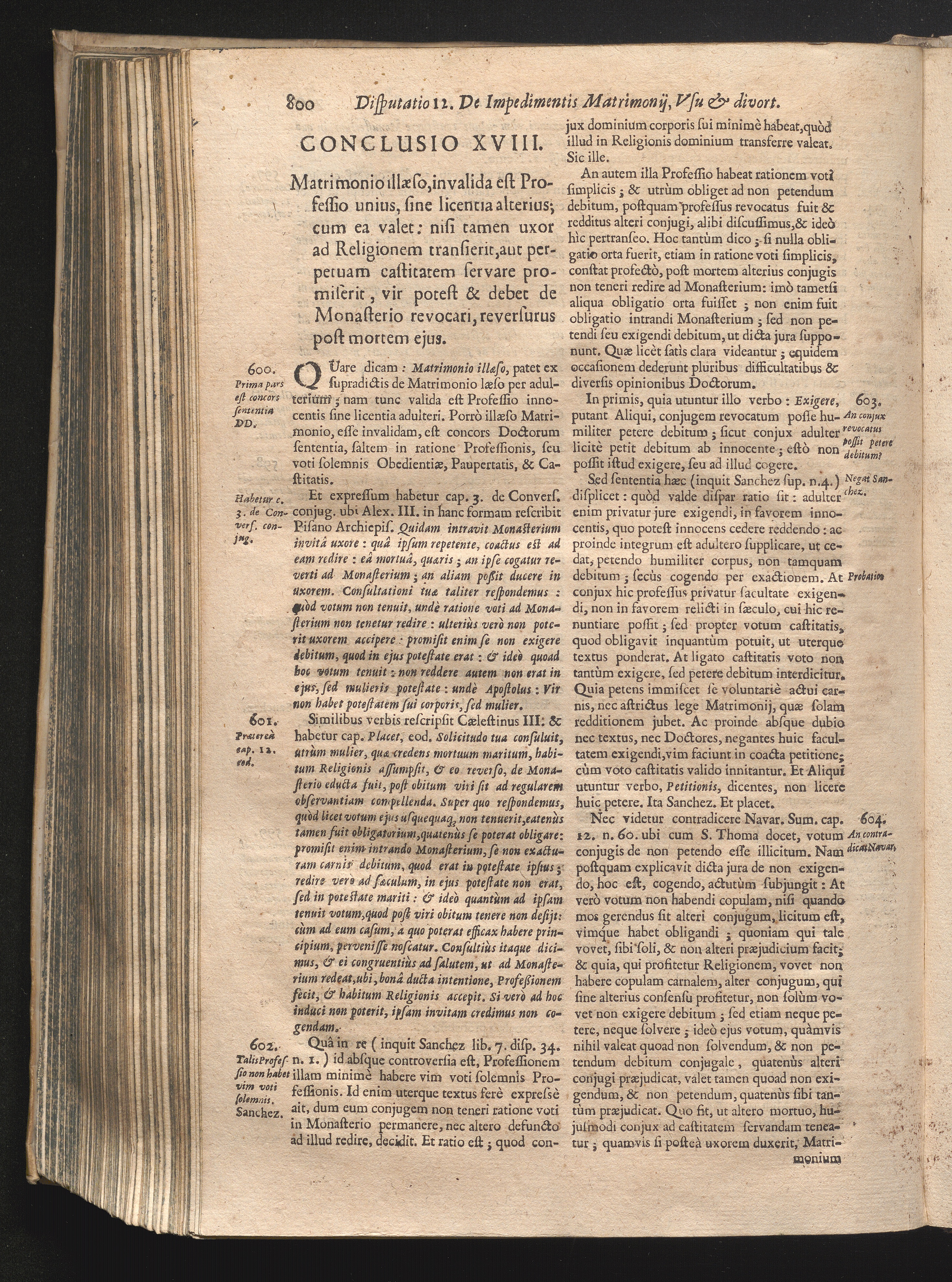 Concl. XVIII. Matrimonio illæso, invalida est professio unius sine licentiâ alterius,[...]