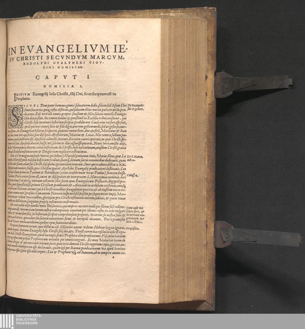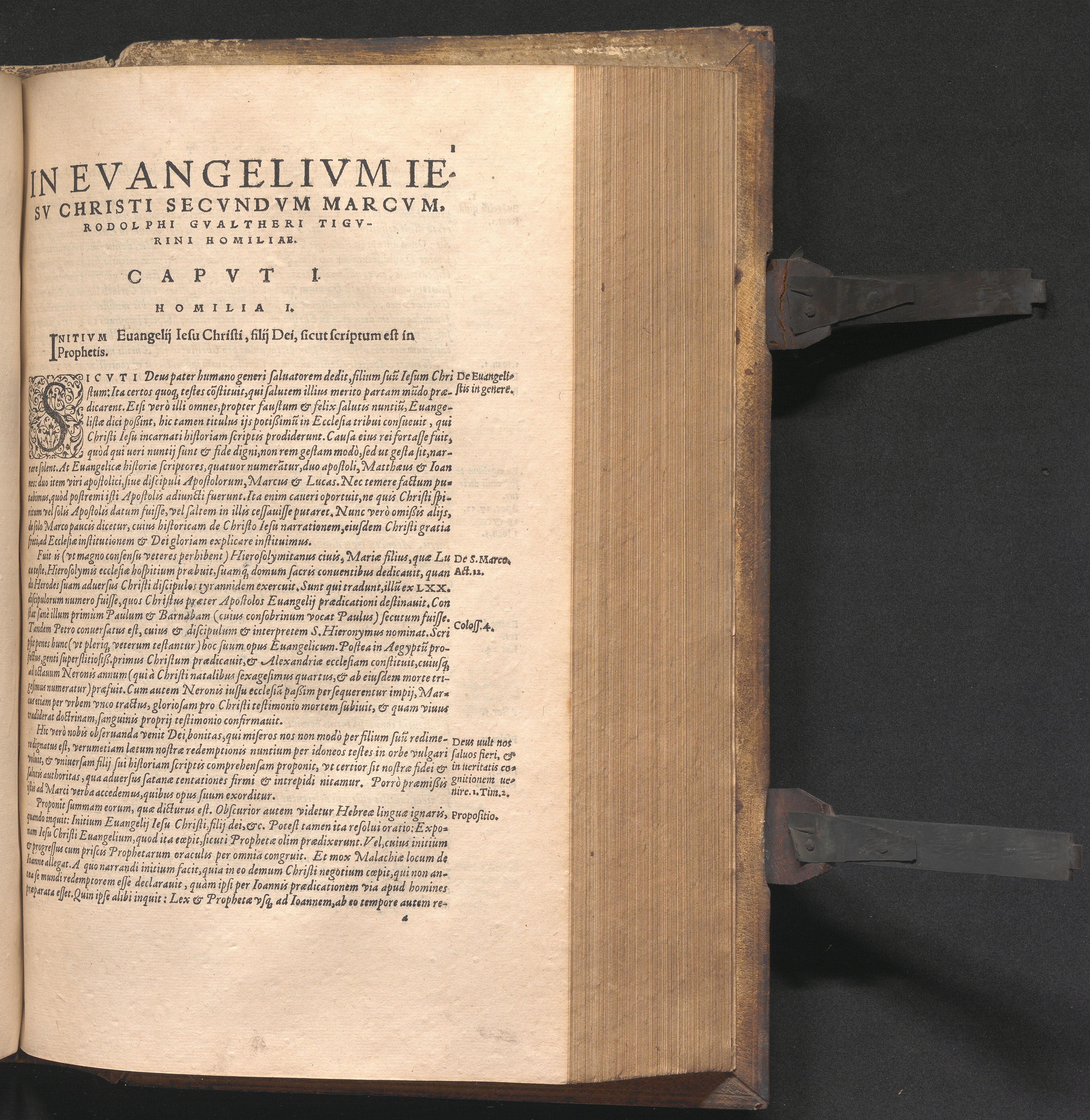 D. Marcvs Evangelista. Rodolphi Gvaltheri Tigurini in Euangelium Iesu Christi secundum Marcum Homiliæ CXXXIX. : Accessit operi Præfatio authoris, qua docetur, quid hominem Christianum inter nostri seculi diuersas de Religione co[n]trouersias, & graues persecutionum motus facere conueniat. Indices præterea tres rerum & locorum scripturæ, locorum item com[m]unium, qui hoc libro explicantur