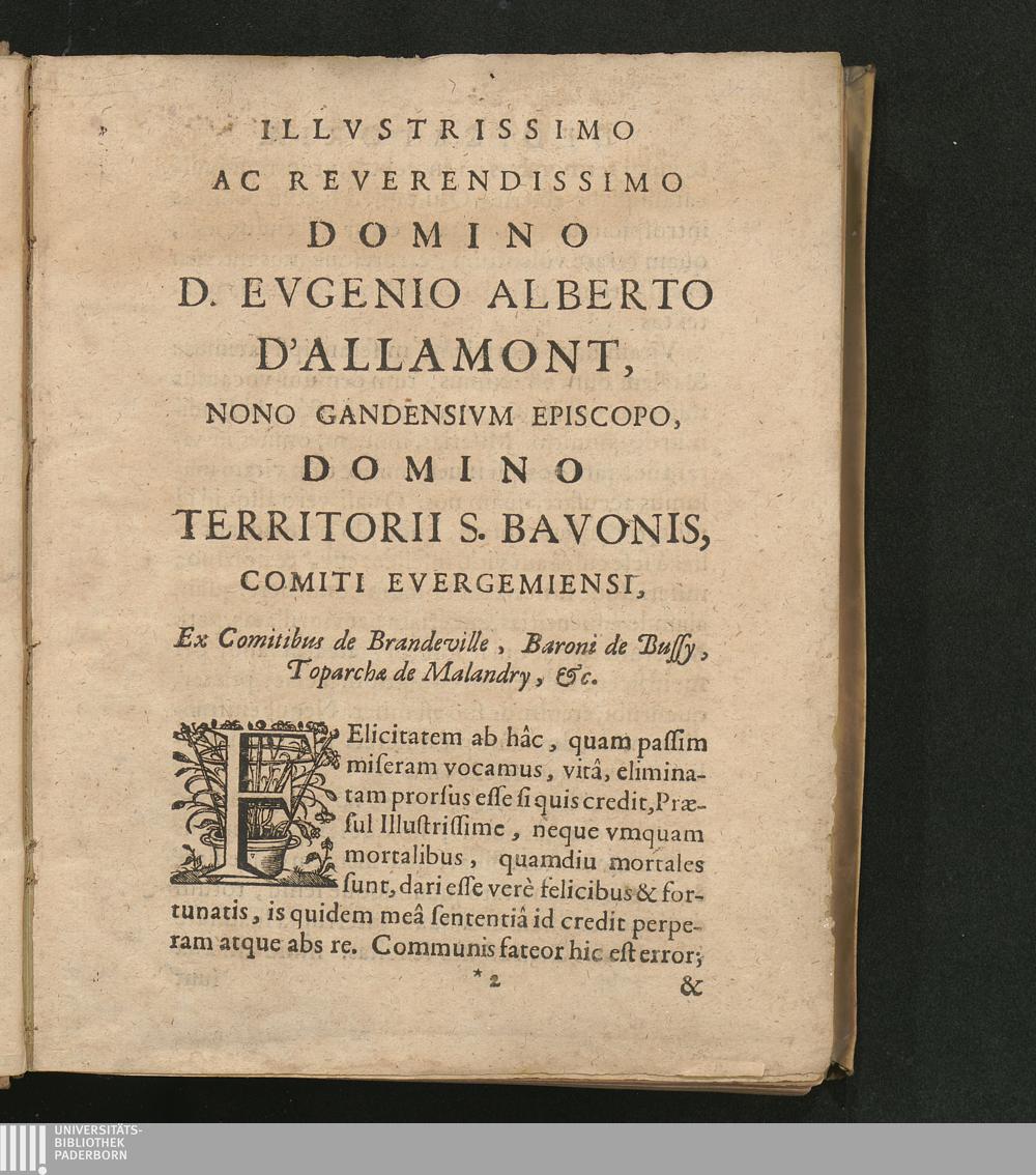 Illvstrissimo Ac Reverendissimo Domino D. Evgenio Alberto D'Allamont, Nono Gandensivm[...]