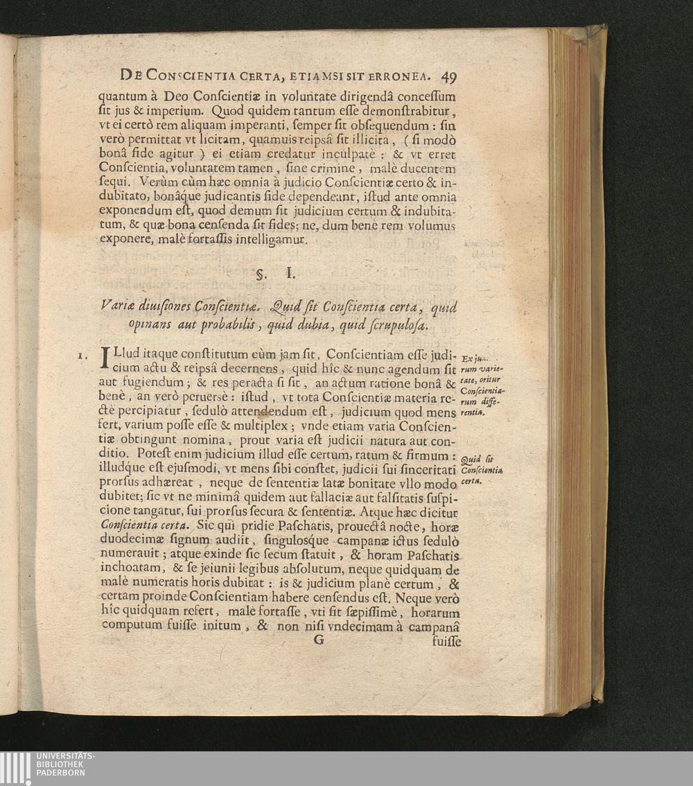 §. I. Variae Conscientiae diuisiones. Quid sit Conscientia certa, quid opinans aut[...]