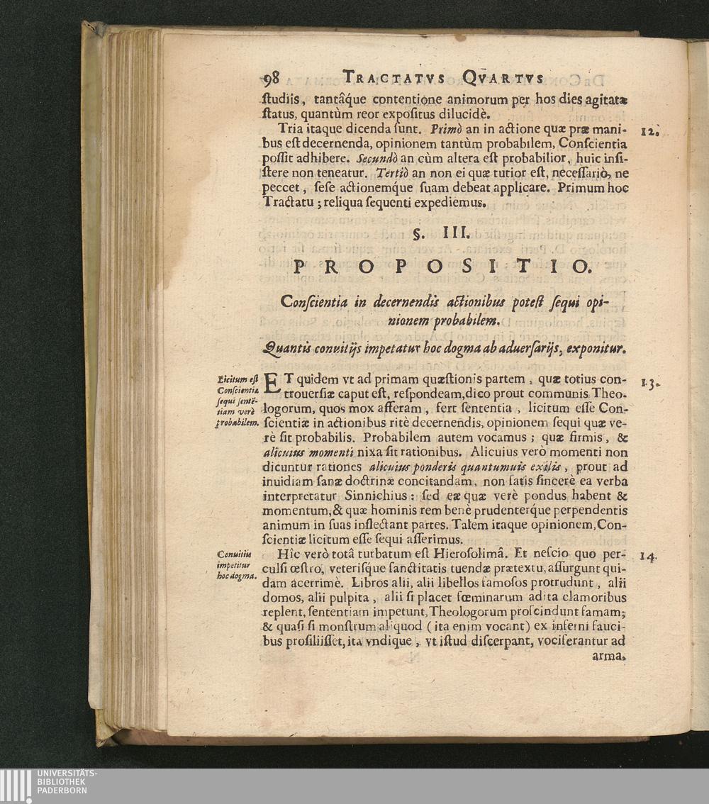 §. III. Propositio. Conscientia in decernendis actionibus potest sequi opinionem[...]